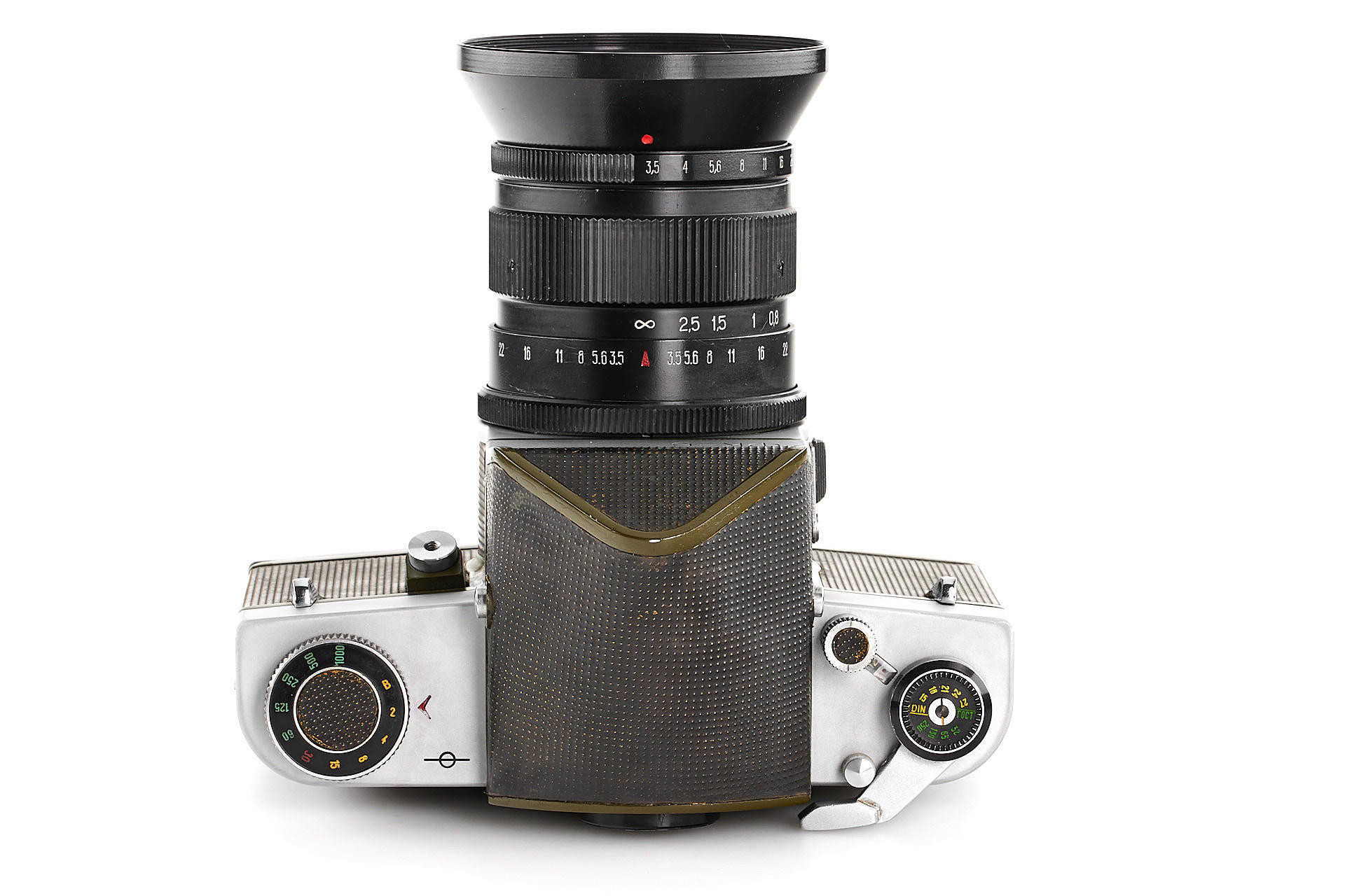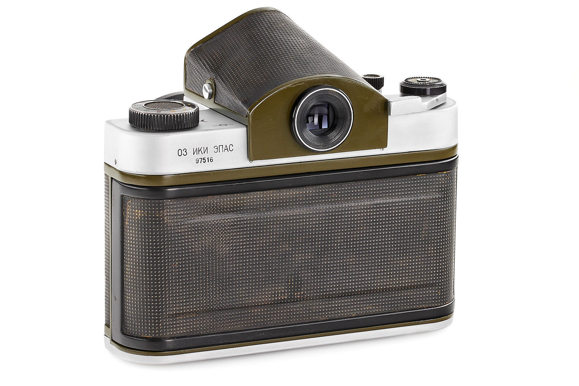 Apollo–Soyuz was the first crewed international space mission carried out jointly by the United States and the Soviet Union in July 1975. The Soyuz crew was Commander Alexei Leonov and Flight Engineer Valeri Kubasov. The cosmonauts received a specially designed FK-6 camera to document the flight. It was a single lens, medium format reflex camera with interchangeable lenses. The body and lenses have been engineered for use in an oxygen-rich environment by using only non-flammable materials and modified to withstand the harsh conditions during space flights. The FK-6 camera was mentioned in the U.S. space center documents: ‘Apollo Soyuz Test Project Design Characteristics’ and in the final Flight Plan for the mission. The offered FK-6 no.97516 comes with Arsenal M-26 3.5/45mm engraved with the same number as the body. Everything in excellent cosmetic and perfectly working condition. It is one of the rarest camera from the history of space exploration.