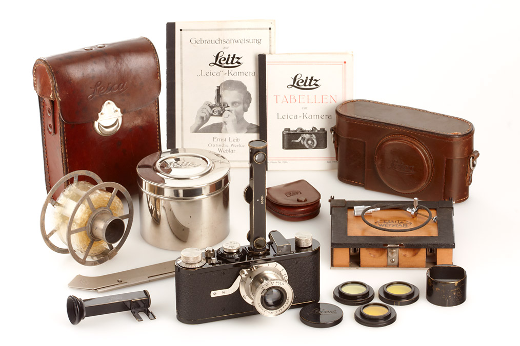 first owners outfit incl. camera in very fine condition and in good working order, FODIS rangefinder no.18996, cap, everready case, ETRIN case, very first type FISON hood with rectangular opening, WINKO right angle finder, FILBY yellow filter 1, FILGE yellow filter 2, FILTU yellow filter 3, original cable release, ABLON film trimming template, original instruction book (Juni 1928, Liste Photo 2319), exposure tables (Juni 1928, Liste Photo 2283), early CORREX developing tank in nickel, complete with reel and apron, VEFOR masking frame for 6x8cm