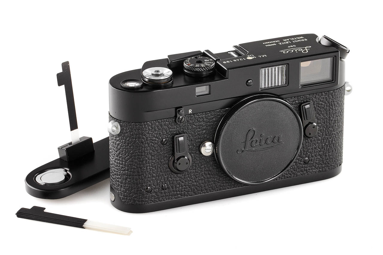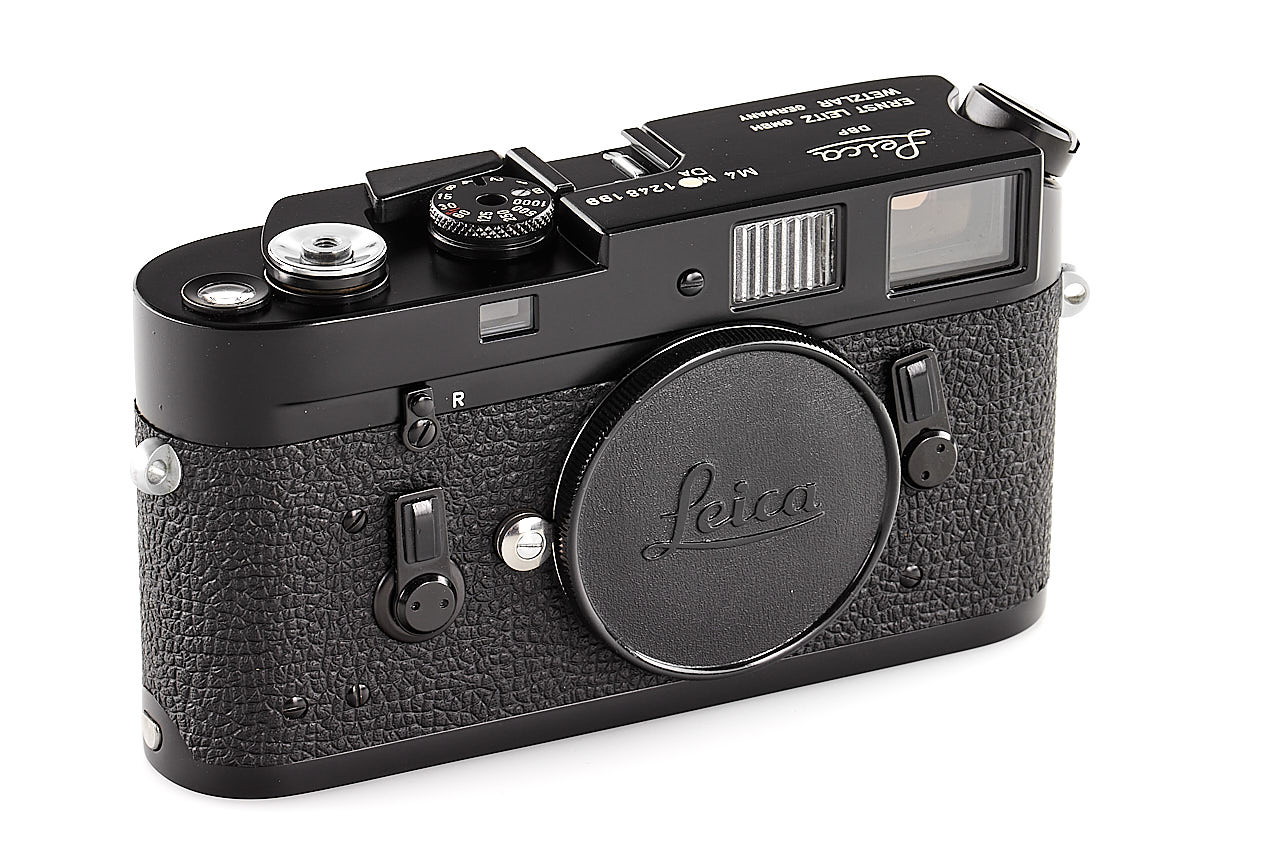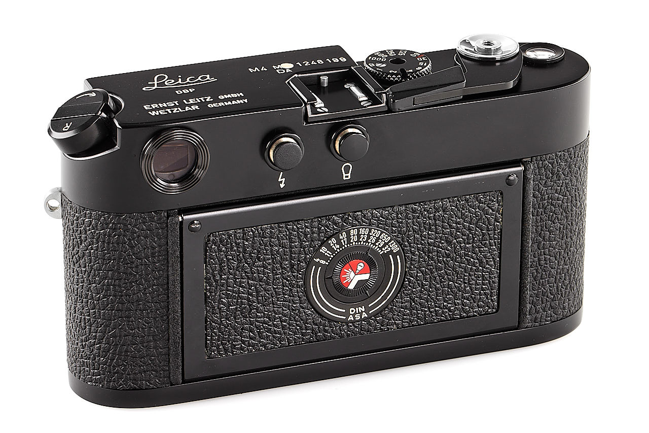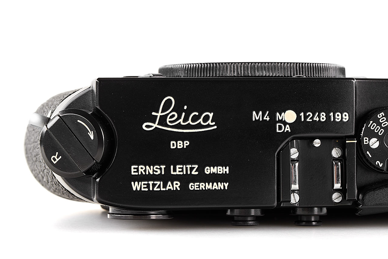 In the early 1970s E. Leitz Inc. New York manufactured a large number of MDa Mot cameras for use on Zeiss fundus cameras, an unexpected outcome of this cooperation was a number of M4-M and M4-MOT cameras being left without parts necessary for motor use. These Leicas were fitted with a grooved body casting for marker strips and sold as special black M4s. The offered example of this very rare camera is in beautiful, mint condition and good working order, together with an extra matching standard bottom plate, some marker strips and a body cap, a similar camera no.1248177 can be seen in James L. Lager An Illustrated History vol. 1 - Cameras, on page 235.