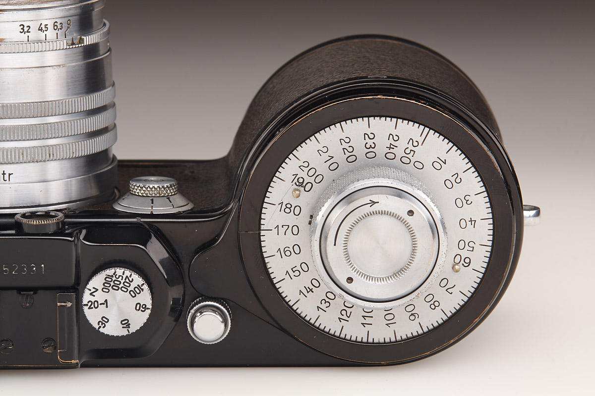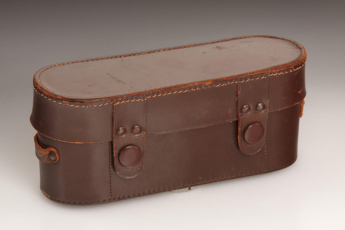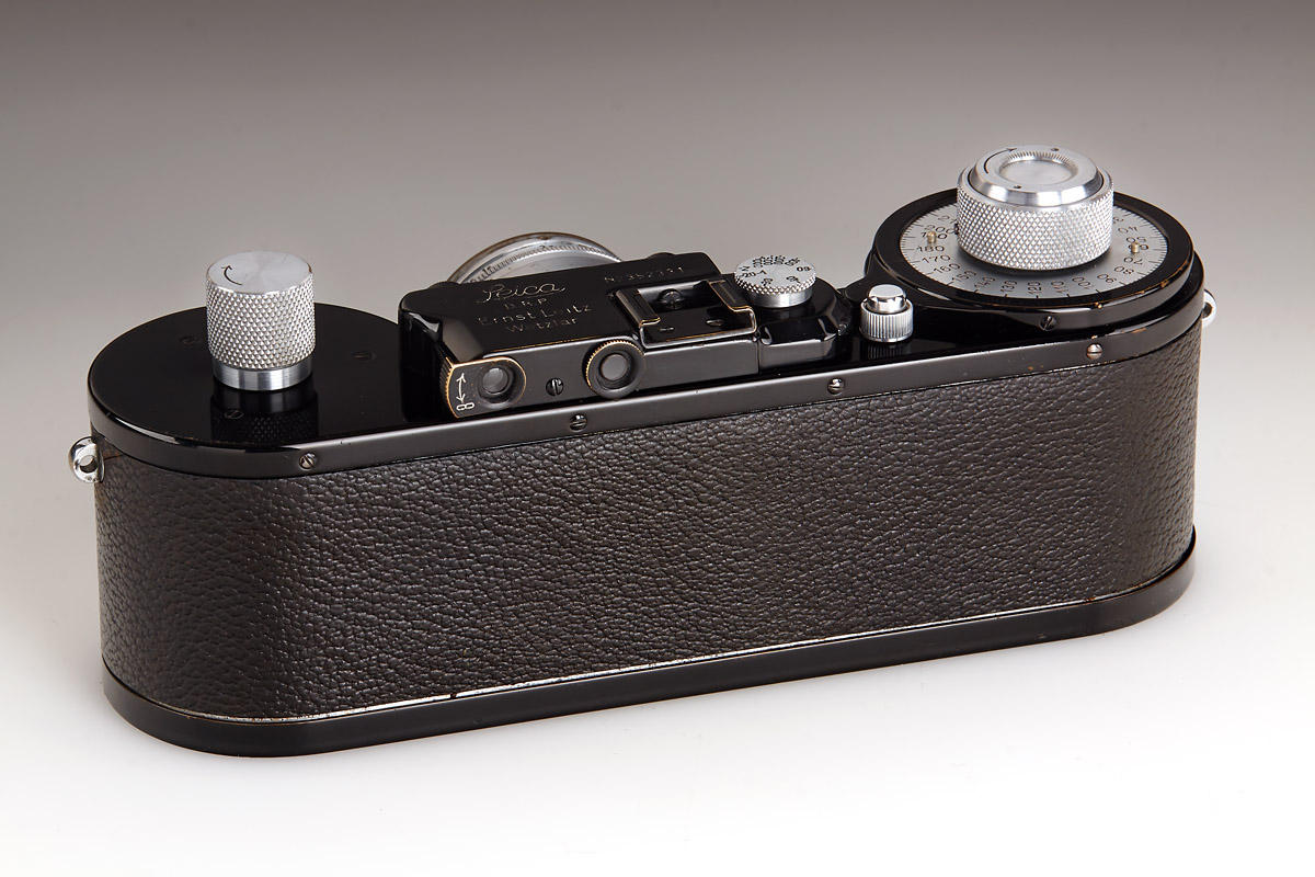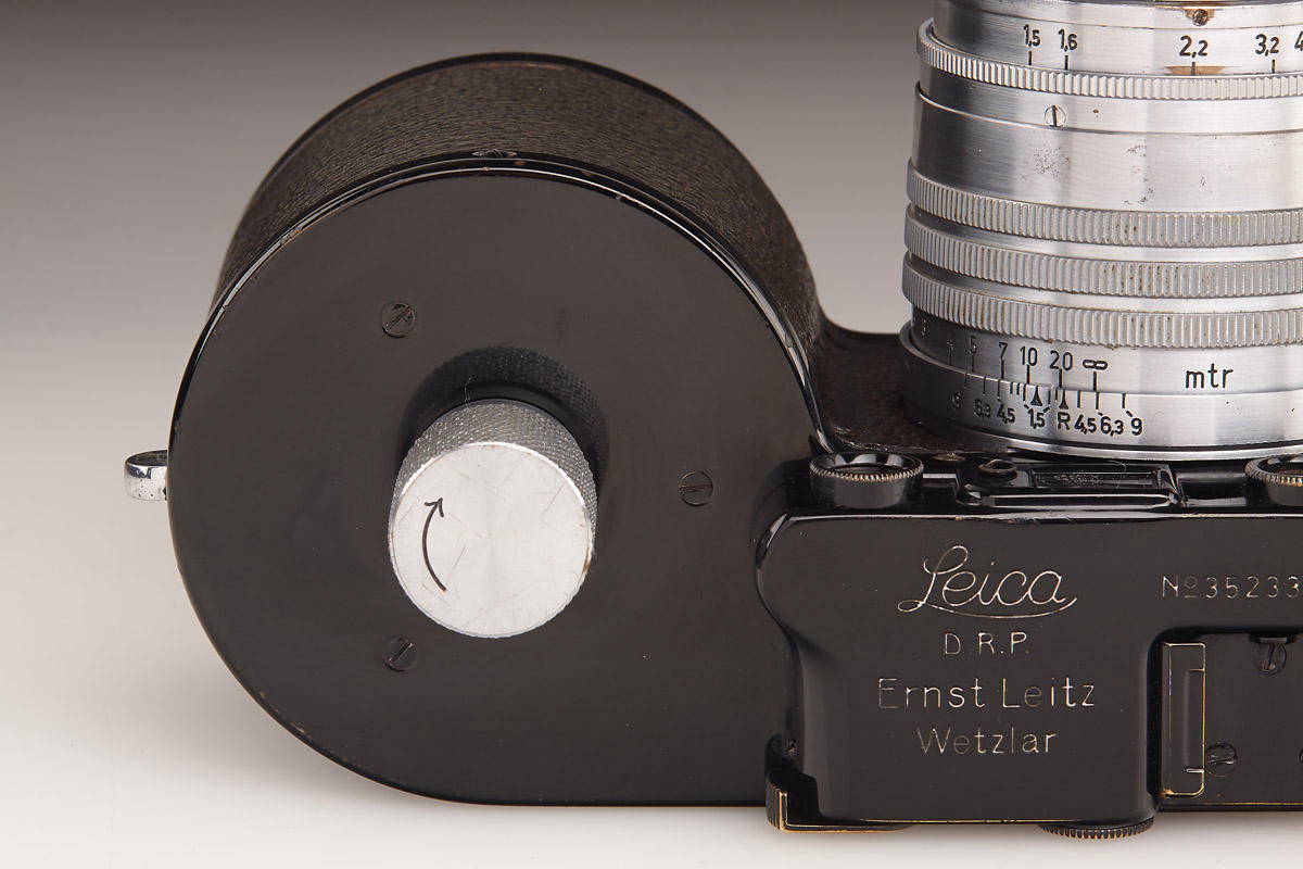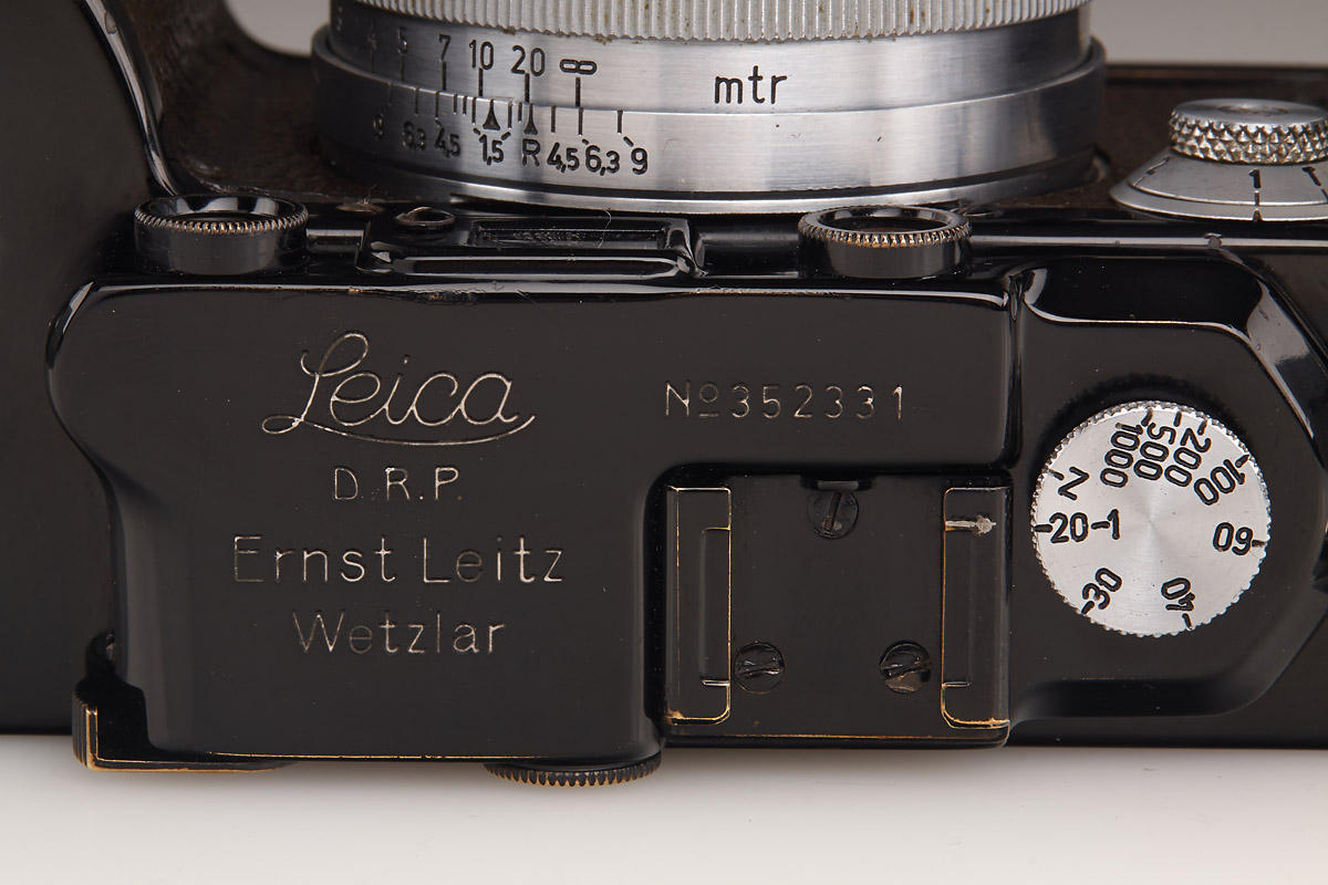 Wartime camera in beautiful original condition, with Xenon 1.5/5 cm no.426788, ESFOO everready case. The Leica 250 or Reporter was introduced in 1934, bearing serial numbers from 130001 (1934) to 359916 (1953); total production is less than one thousand cameras. The unusually shaped Leica produced 250 photographs on 33 feet of film in special cassettes. The characteristic of the 250 are the enlarged film chambers at each end of the camera. Two variations were available: the first version (FF model) had a top speed of 1/500 second, the second version (GG model) a top speed of 1/1000 second. The Leica Reporter is highly valued by collectors, especially in this very fine condition. Die Leica 250 oder Reporter wurde 1934 auf den Markt gebracht mit Seriennummern von 130.001 (1934) bis 359.916 (1953), die Gesamtproduktion betrug weniger als 1.000 Kameras. Die ungewöhnlich geformte Leica ermöglicht 250 Aufnahmen auf 10m Film in Spezialkassetten. Charakteristisch für die 250 sind die vergrößerten Filmkammern auf beiden Seiten der Kamera. Es wurden zwei Modelle gebaut: Die erste Version FF (basierend auf der Leica III) mit Verschlusszeiten bis 1/500 Sekunde, die zweite Version GG (Leica IIIa) mit Verschlusszeiten bis 1/1000 Sekunde. Die Leica Reporter ist eine sehr gesuchte Kamera unter Sammlern, besonders in diesem hervorragenden Zustand.