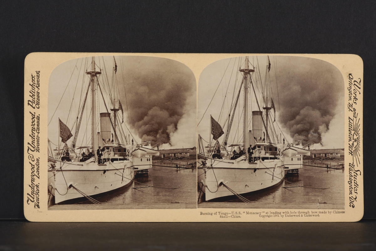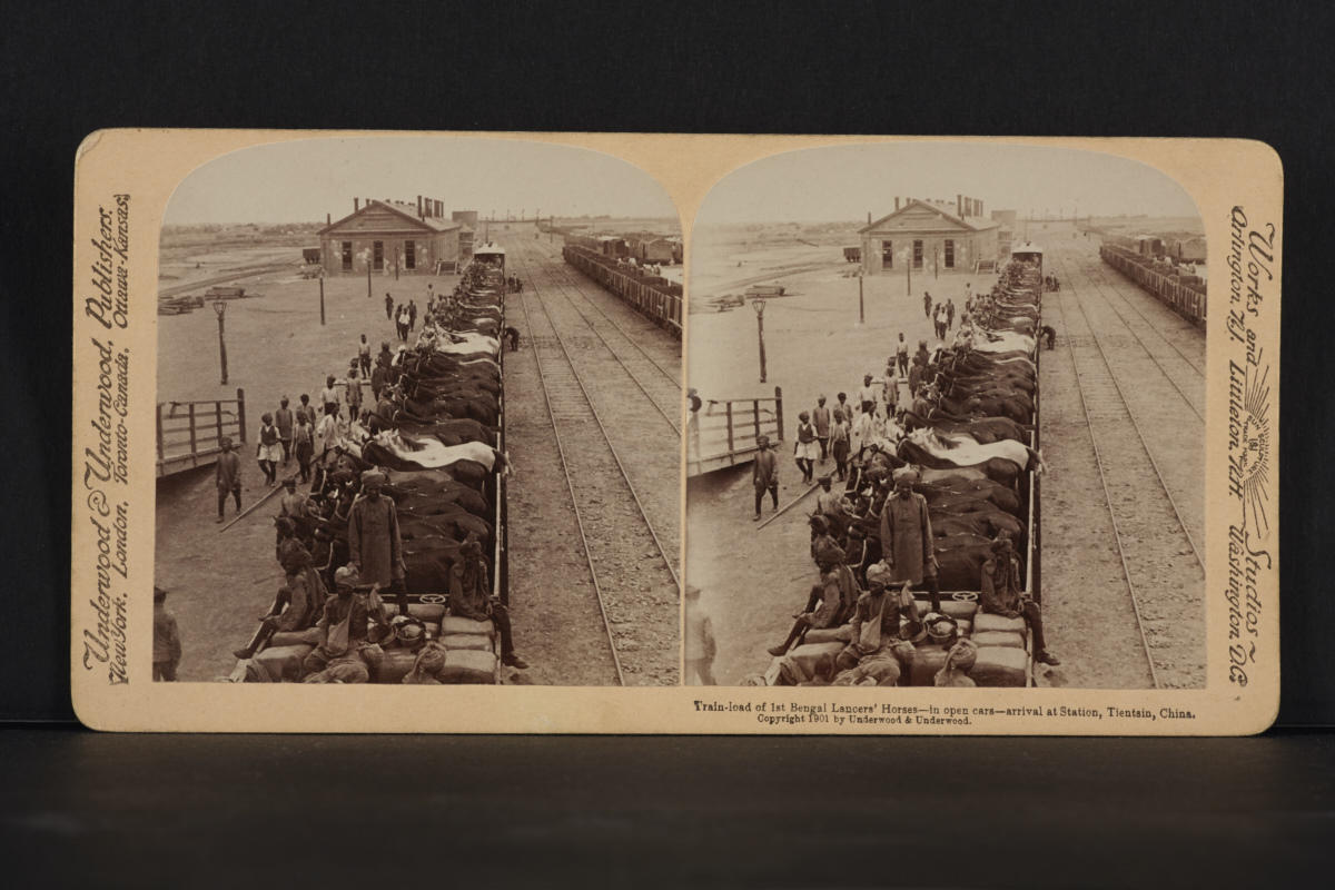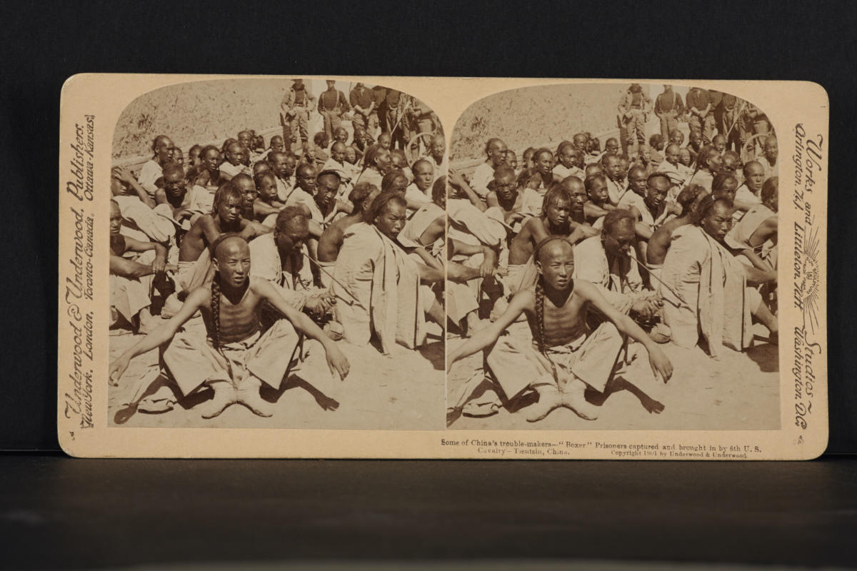 89 stereo cards, the albumen prints with rounded corners mounted on distributors cardboard with typographic inscriptions Die 89 Stereo-Ansichten der Bildagentur Underwood & Underwood mit dazugehörigen präzisen typografischen Beschriftungen bieten eine interessante Übersicht über die Situation in China während des Boxeraufstands (1899–1901). Die Bewegung gegen das Christentum und den Imperialismus Europas, Nordamerikas und Japans führte zu kriegsähnlichen Zuständen. Aufnahmen von christlich-asiatischen Flüchtlingen, Exekutionen auf beiden Seiten, militärischen Sujets, Gefangenenlagern, Alltagsszenen der Bevölkerung und Porträts von Diplomaten und chinesischen Funktionären geben eine traurige Bestandsaufnahme der damals vorherrschenden Realität. The 89 stereo views distributed by the agency Underwood & Underwood with detailed typographic inscriptions offer an interesting and objective overview of the situation in China during the Boxer Rebellion (1899–1901). The movement against Christianity and the imperialisms of Europe, North America and Japan led to war-like conditions. Photographs of Christian-Asian refugees, executions on both sides, military subjects, prison camps, scenes of everyday life of the population and portraits of diplomats and Chinese officials provide a sad report of the prevailing reality of that time.