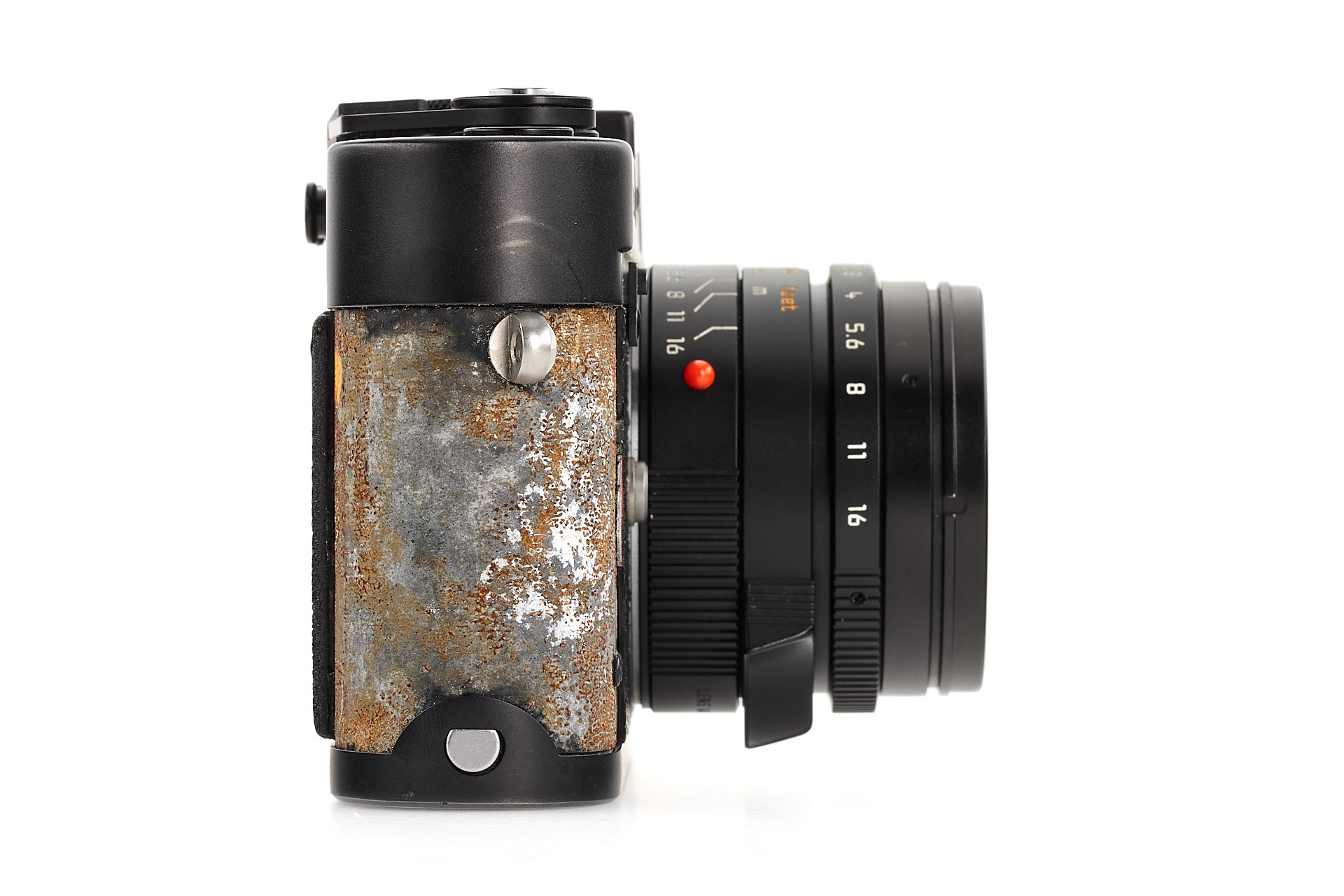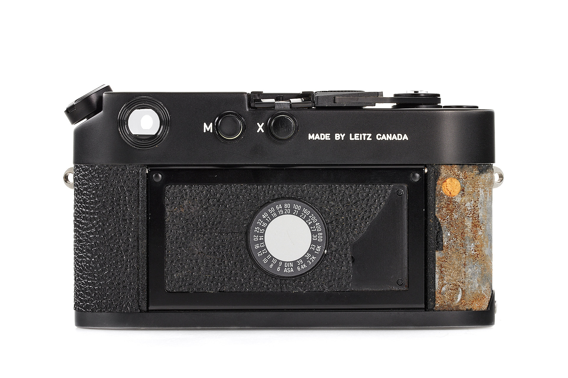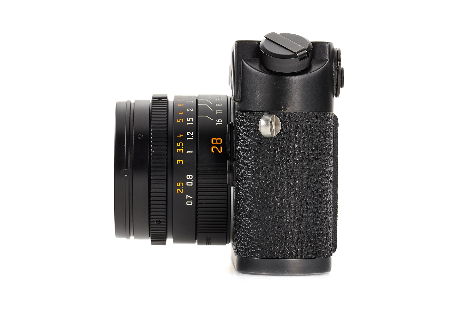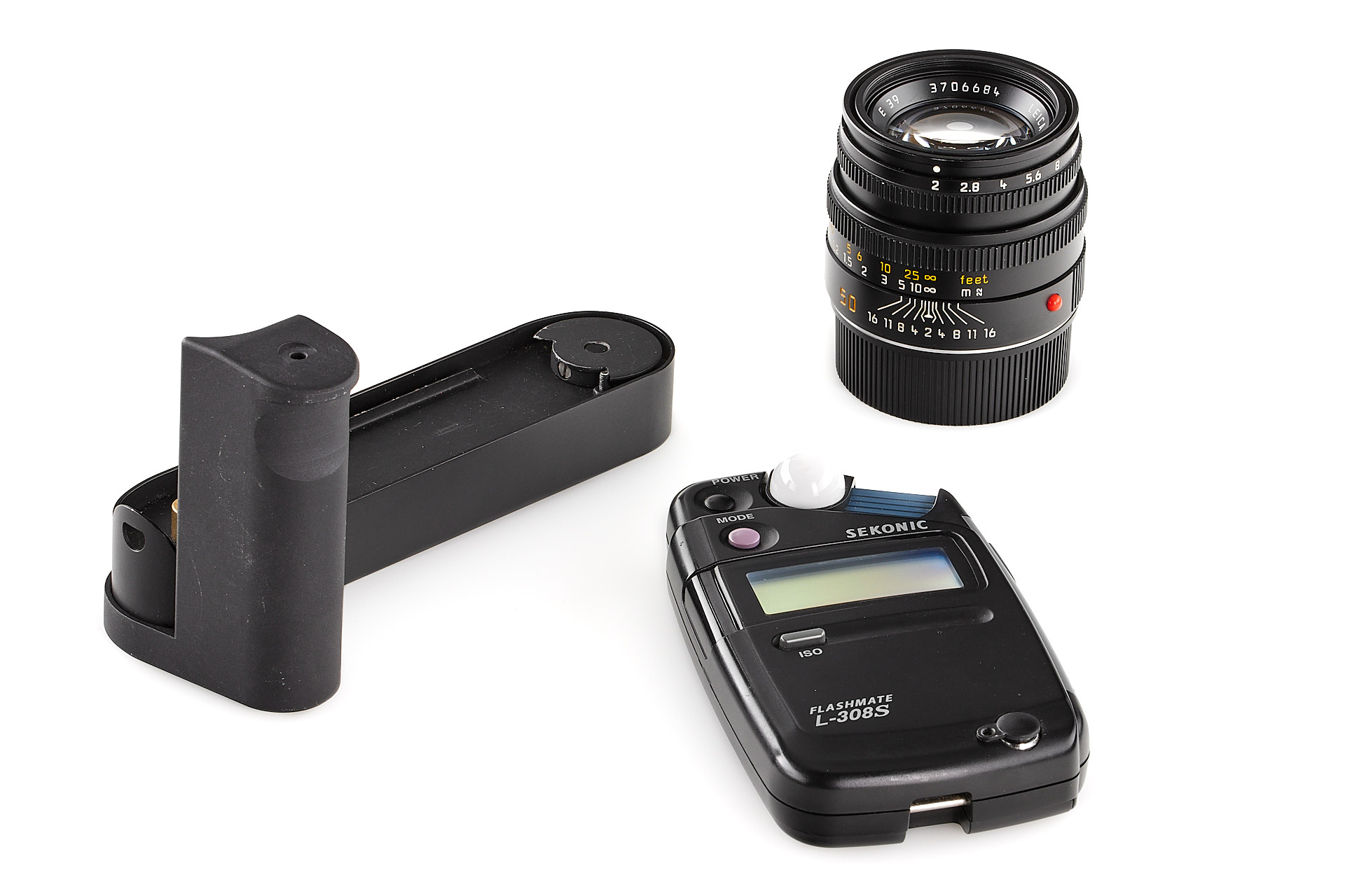 Leica M4-P camera outfit owned and used by award-winning Magnum photographer Constantine Manos. The camera shows signs of years of professional use, a part of the vulcanite covering is missing. This analogue set is complete with two classic reportage lenses — a Summicron-M 2/50mm no.3706684 and Summicron-M 2/28mm ASPH. no.4007636 — as well as a Rapidwinder, Rapidgrip, Sekonic light meter, UV filters and photographer's own camera bag.