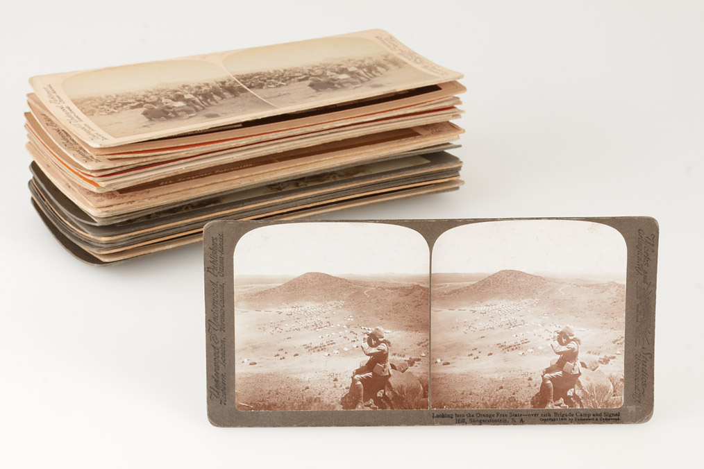 mixed lot of various war-related stereo cards dating from 1870-1920, showing soldiers and parades from all over the world, tissue cards, albumen prints, printing-out-paper and gelatine silver prints, condition varies but mostly undamaged and well preserved (24)