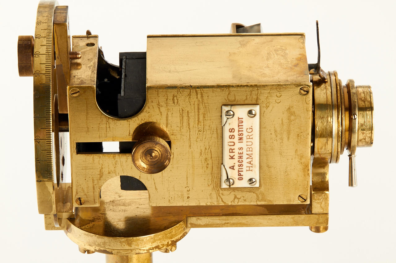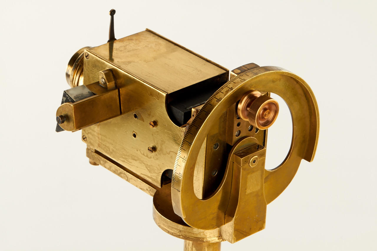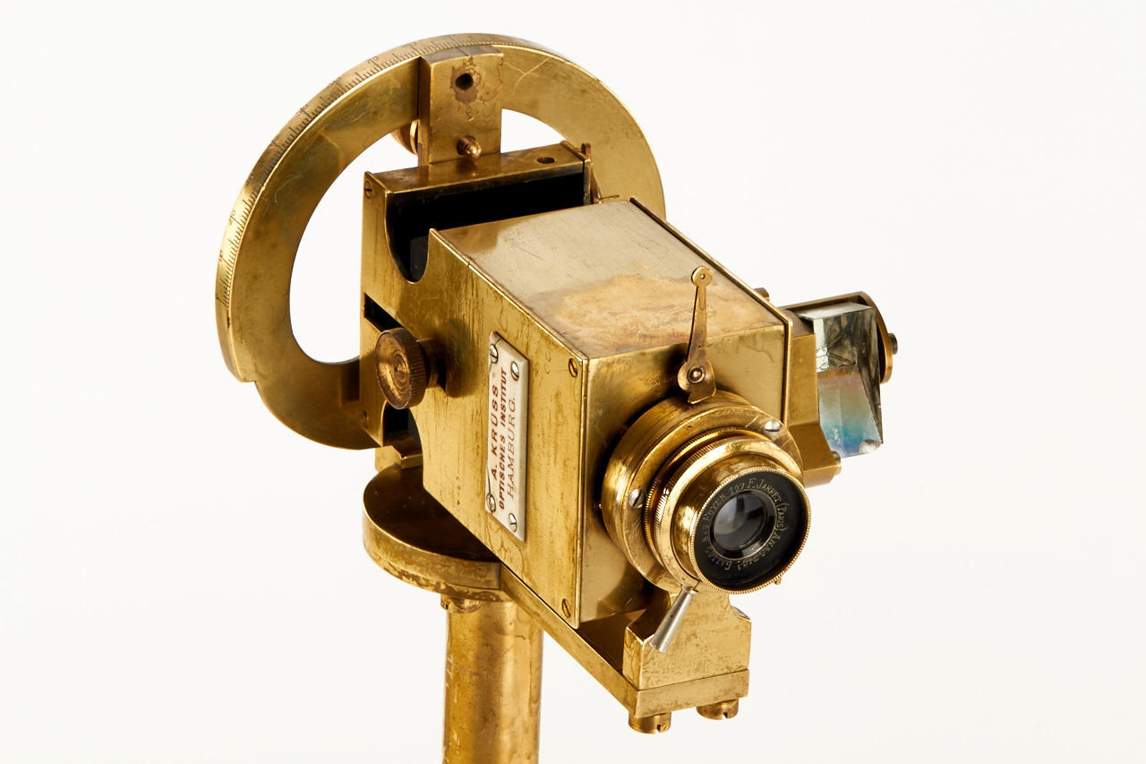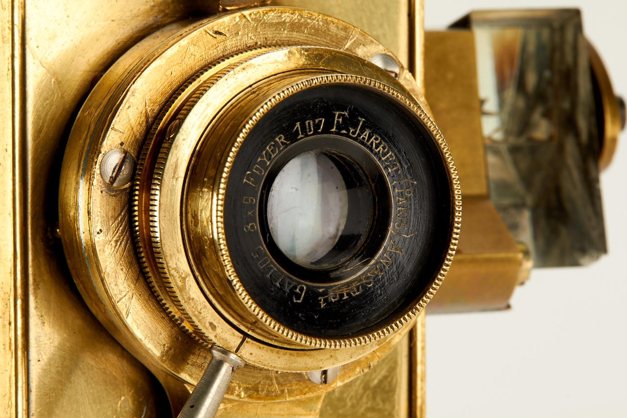 very rare German scientific camera, solid brass construction with iron stand, focusing internal wooden box, uncommon F. Jarret Paris Anastigmat Gallos 107mm lens