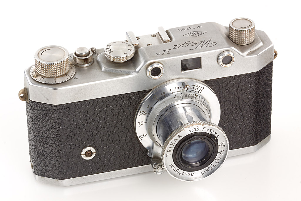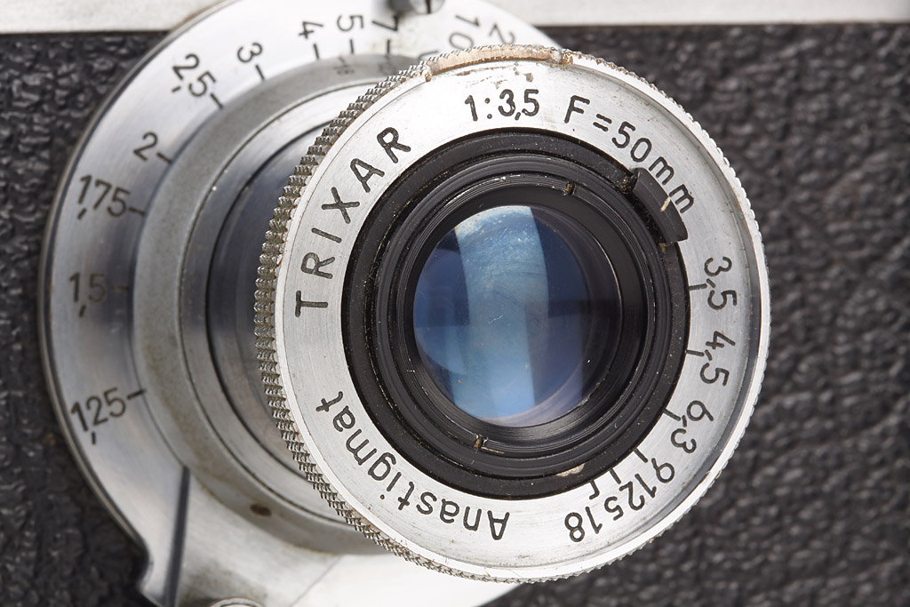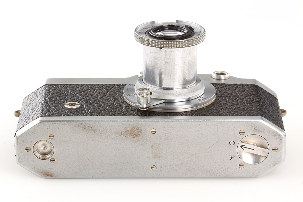 early type of the rare Italian Leica copy in fine condition with Trixar 3.5/50mm, everready case