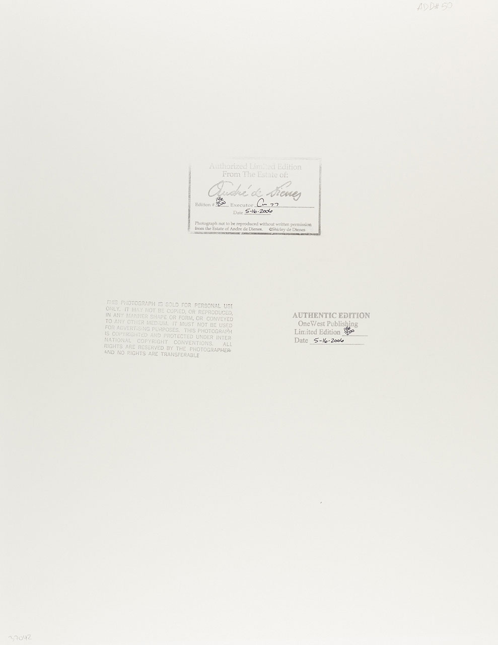 Photographer's edition stamp and handwritten notations on the reverse, edition no. 146/200