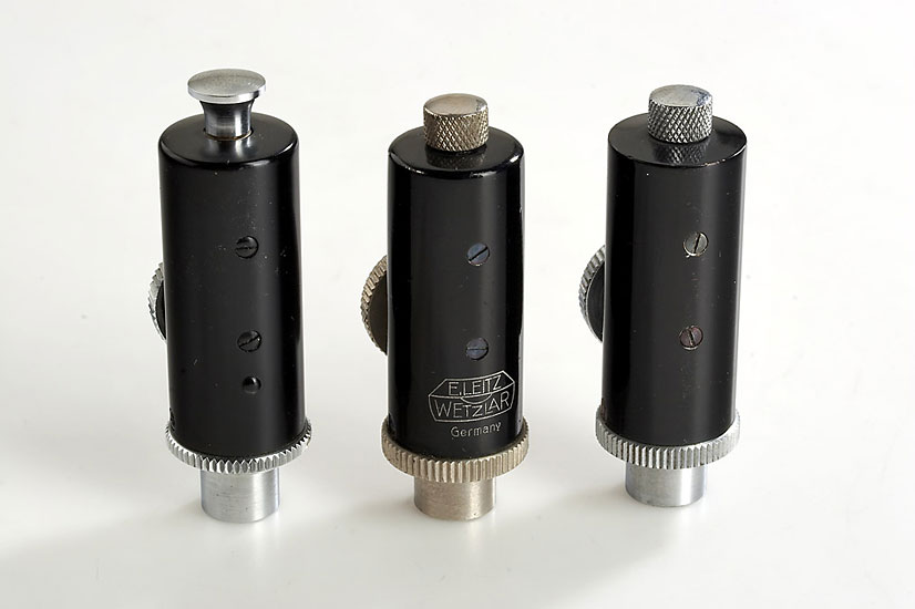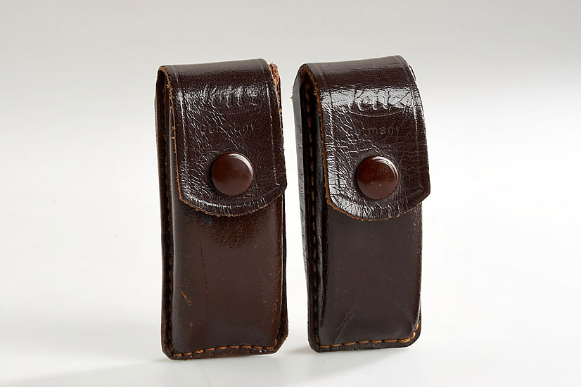 rare early type in black/nickel (auslösen Werk ablaufen lassen), second pre-war version with black dial, postwar version with chrome dial, 2 with leather purses (3)