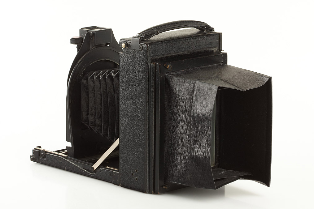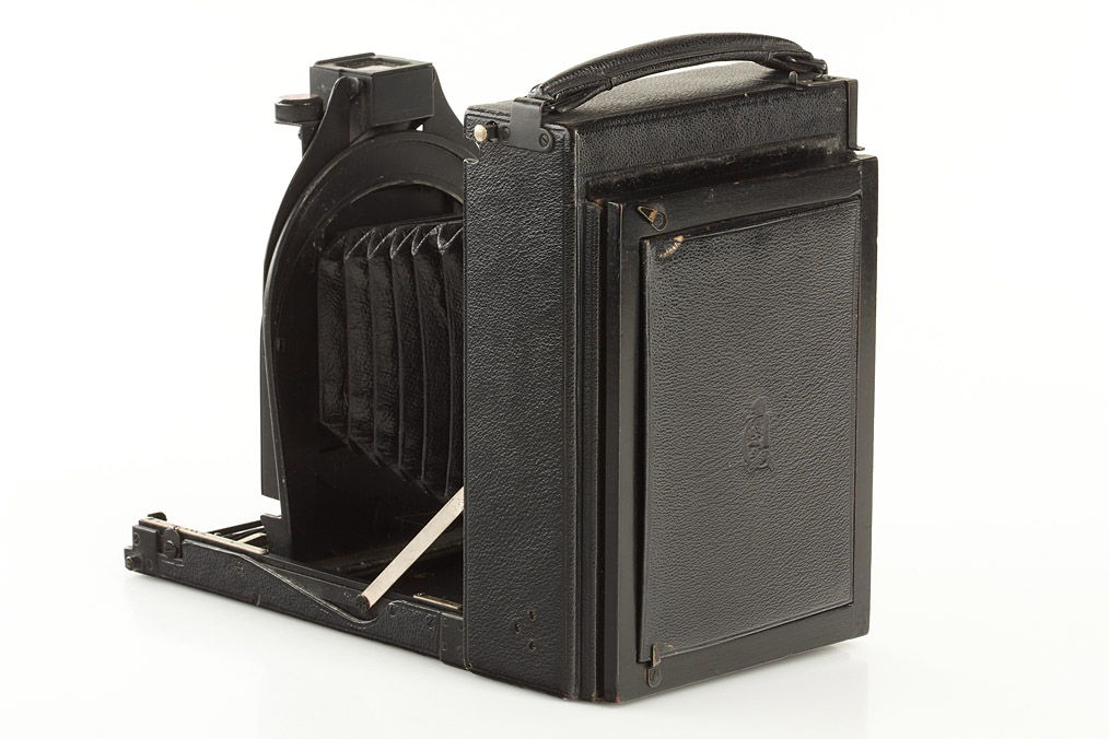 Folding plate camera with Ross Combinable Lens F:11 no.108022, in very fine condition with film cassette and Adams case