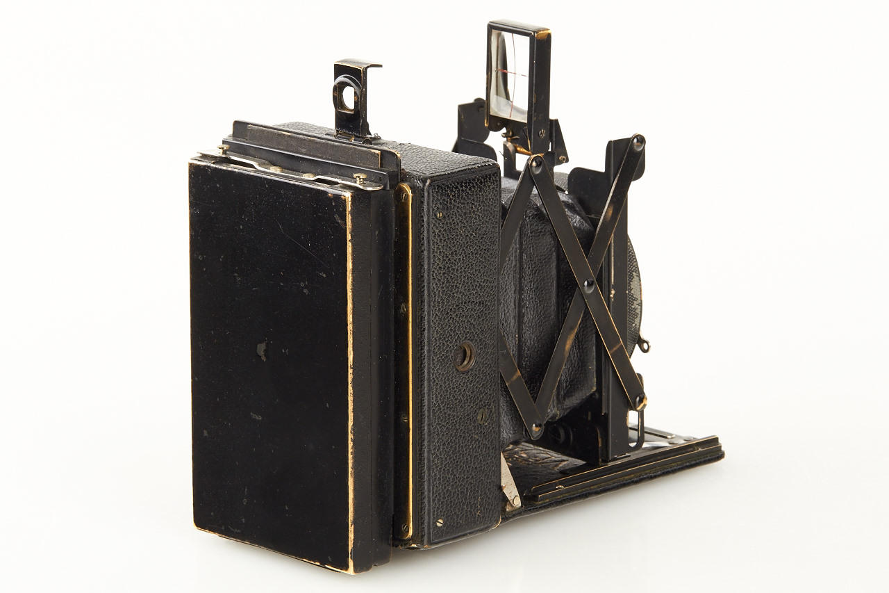 previously unrecorded model for 5x8.5cm plates, slightly different viewfinder construction, with Ross London Zeiss Tessar 4.5/75mm no.17184, film pack holder and brown leather case