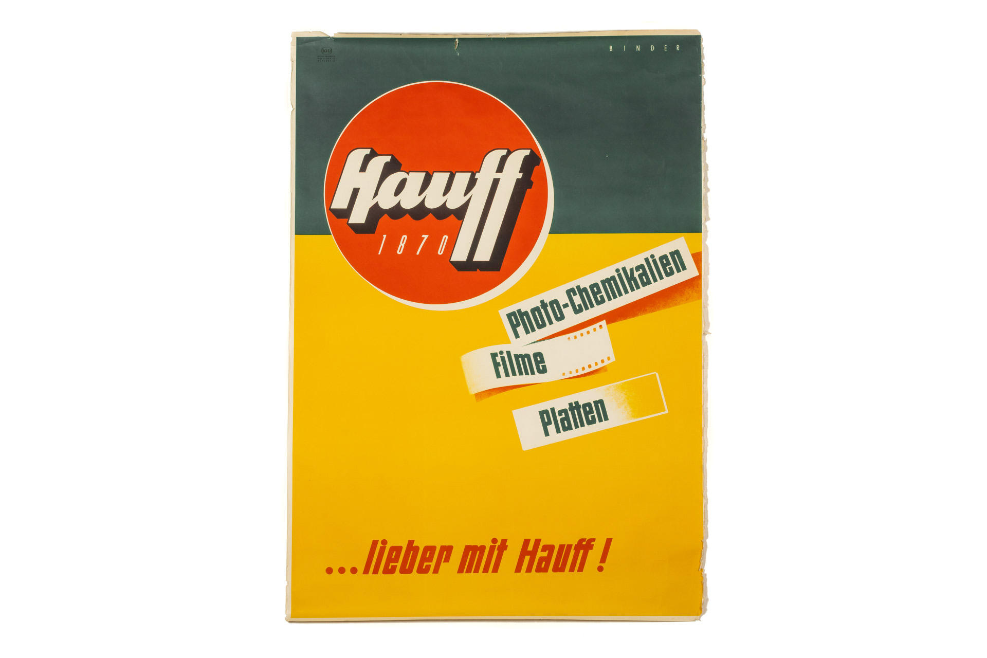 Very nice poster for Perutz films, printed papers 92 x 81cm, together with German advertising poster for Hauff, printed paper 120 x 84cm, both in very good and original condition
