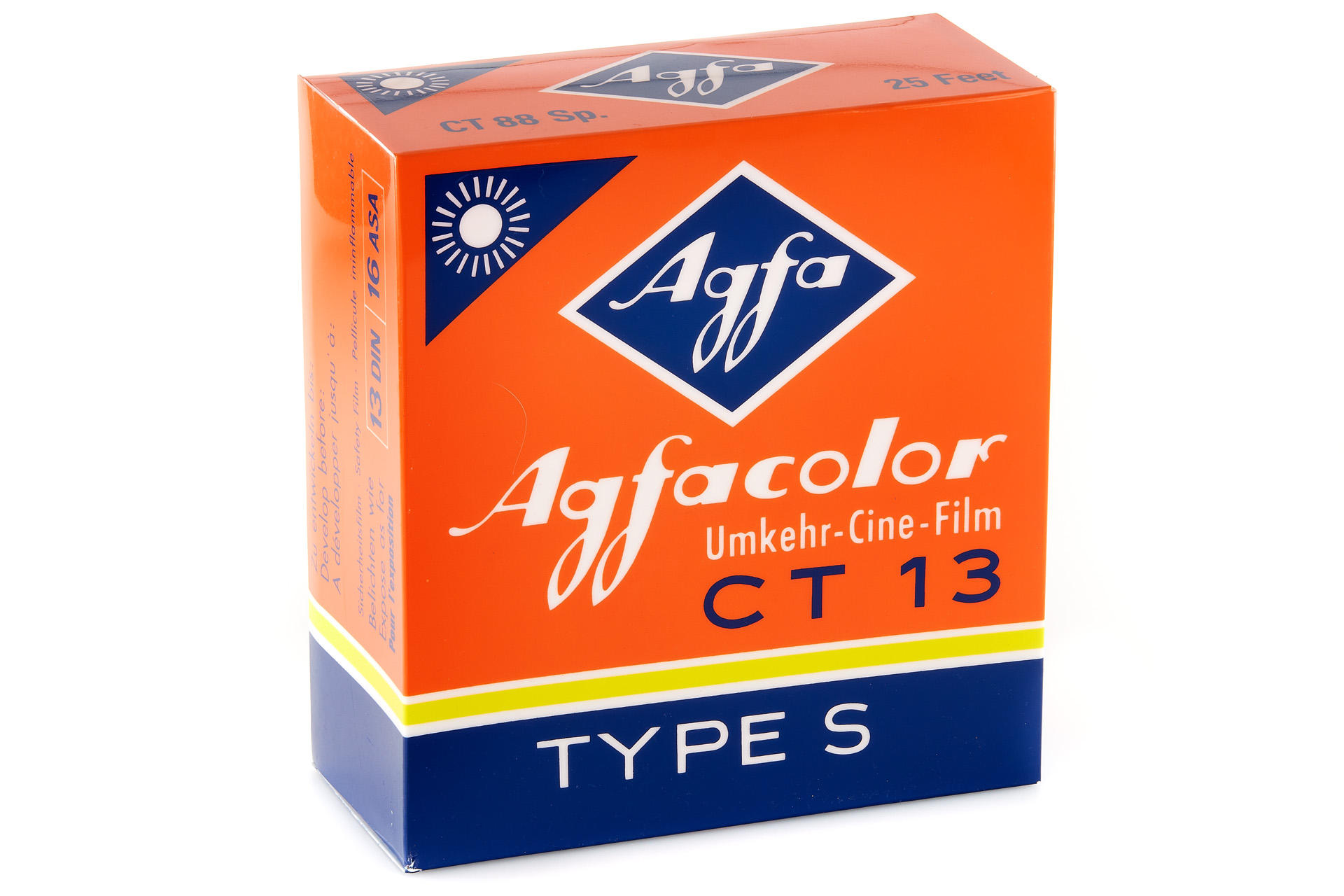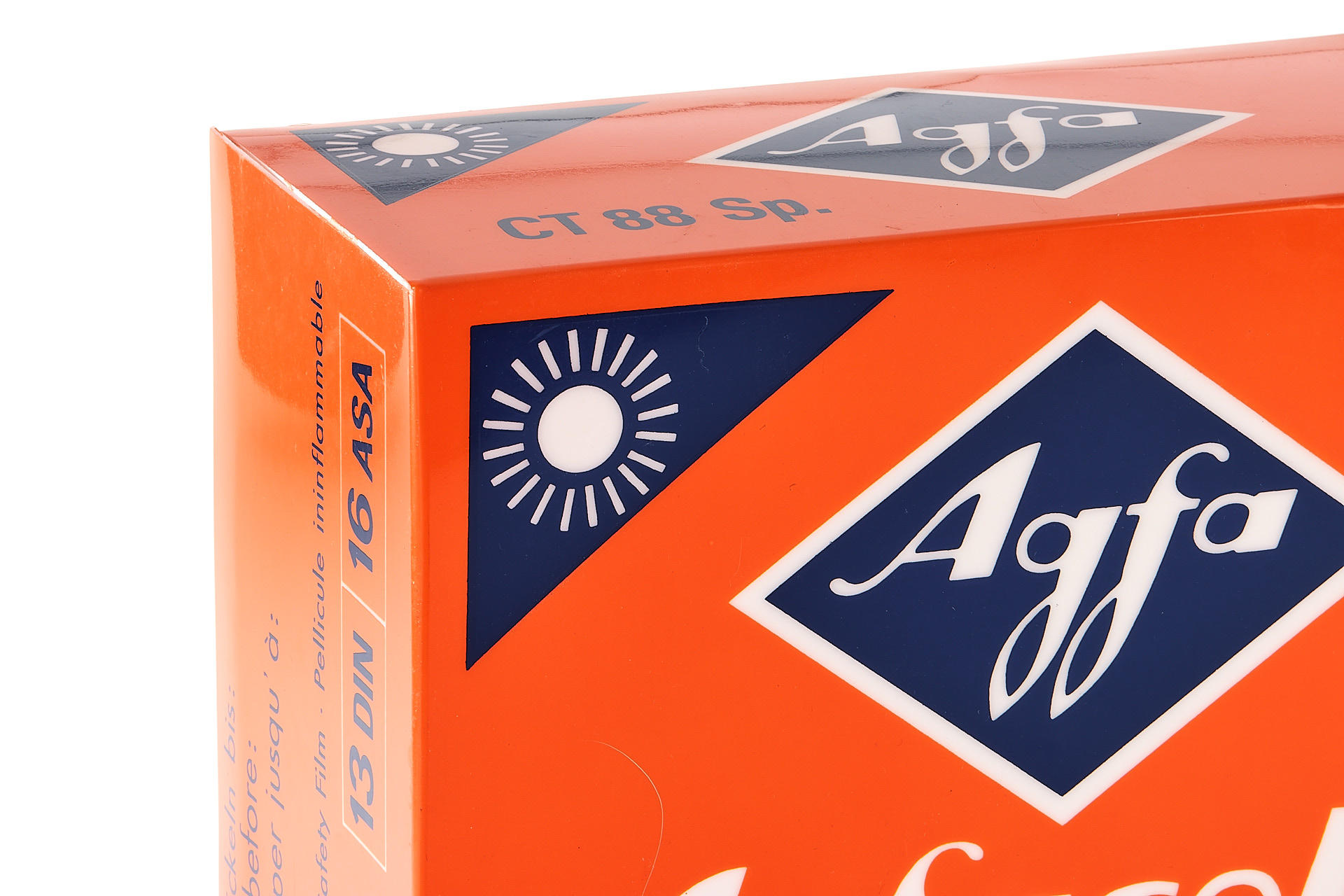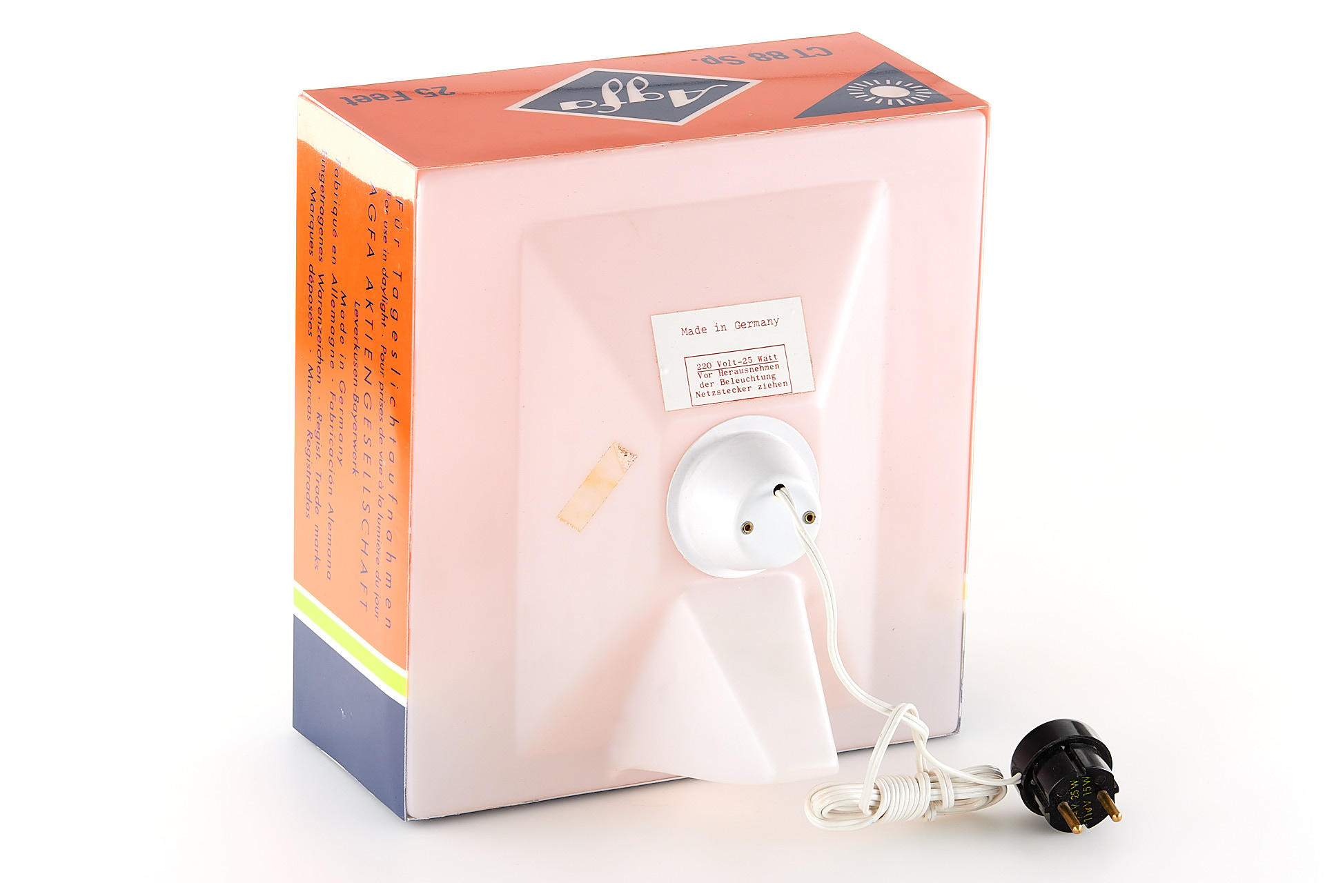 Beautiful advertising table lamp in the shape of an oversized Agfacolor CT 13 film box, in mint condition and working order