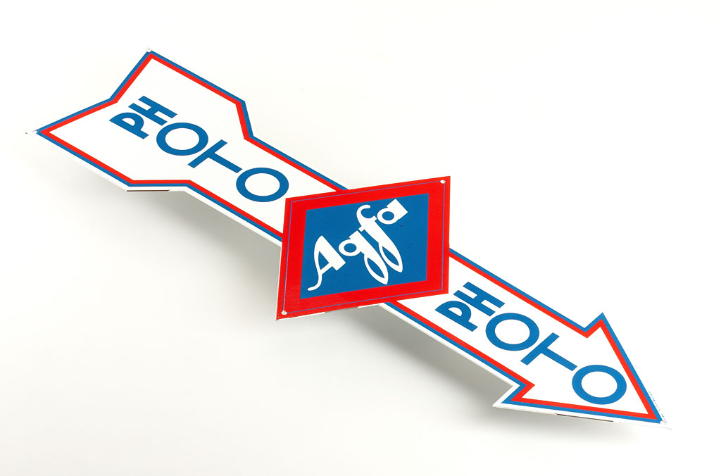 near mint AGFA FOTO enamel sign (33x60cm) and a near mint AGFA PHOTO arrow enamel sign (26x69cm) (2)