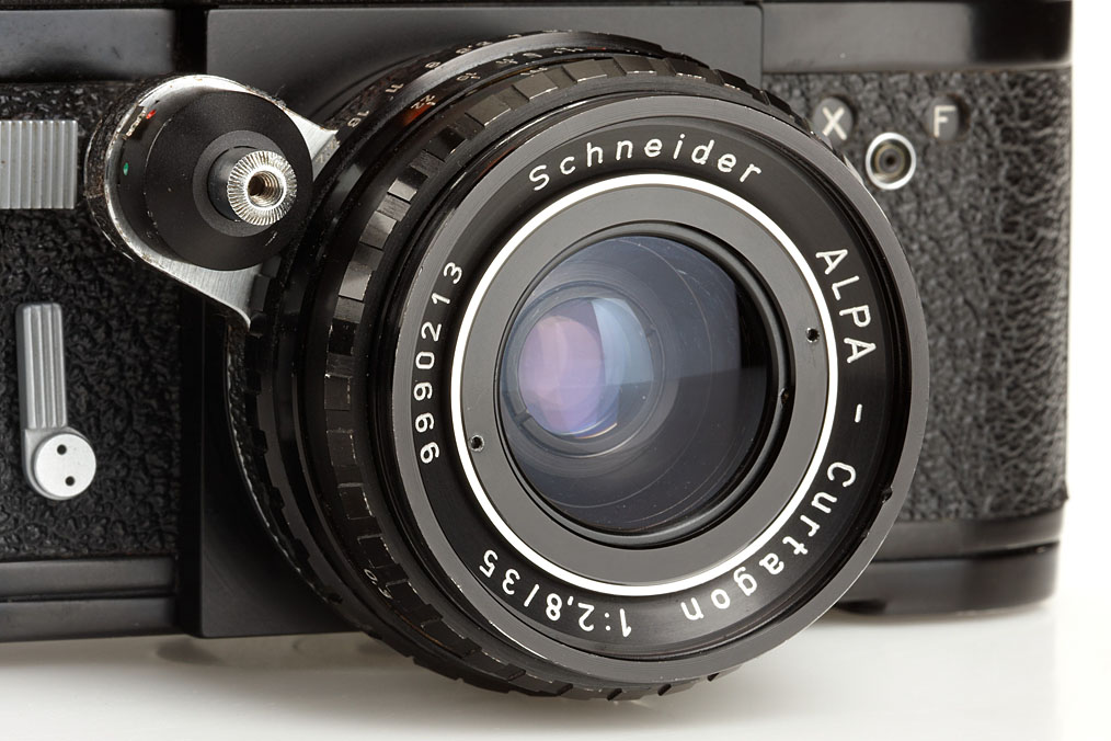 very rare body (total production 27 units only) in good working condition, for 18x24mm exposures, matching Schneider Alpa-Curtagon 2.8/35mm no.9990213