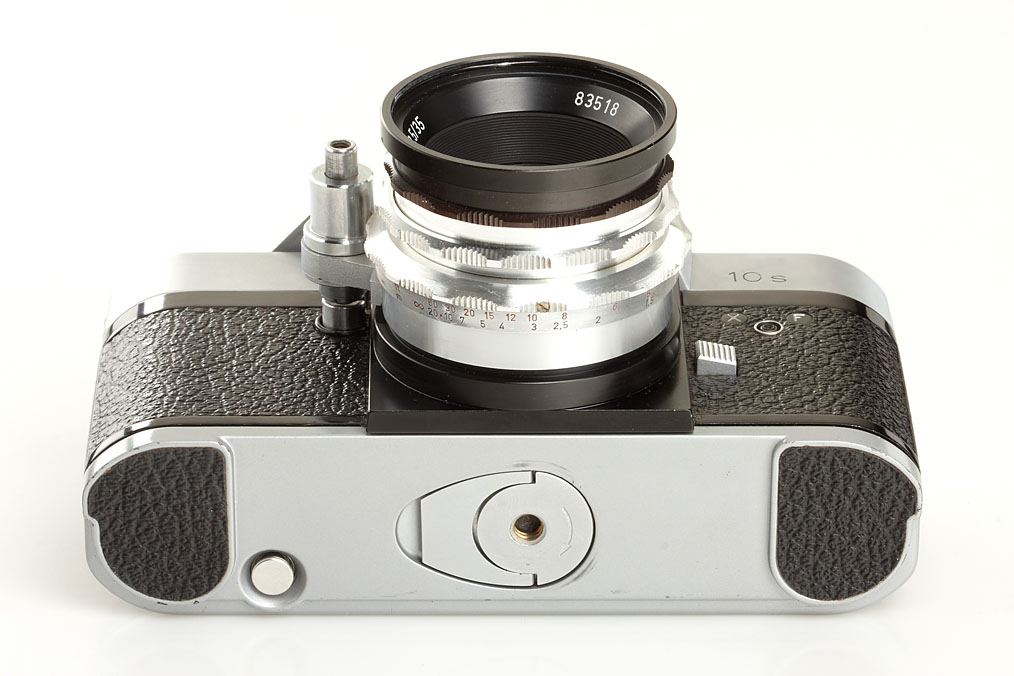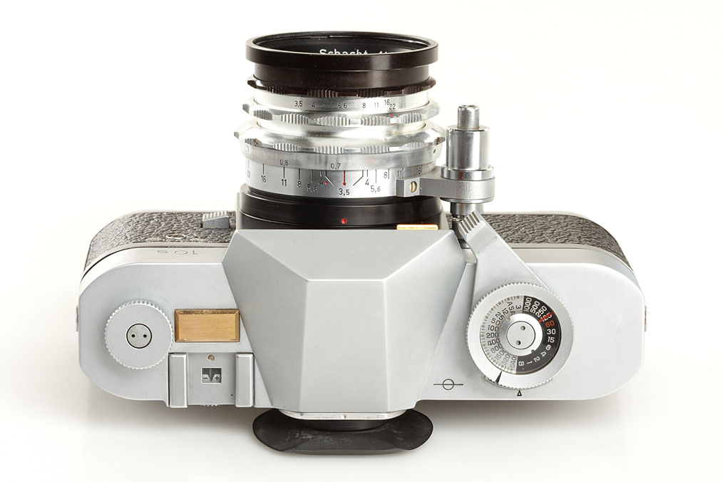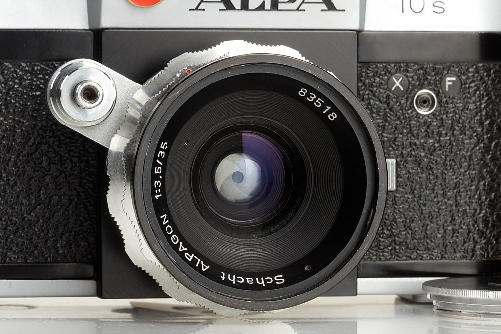 very rare body (total production 97 units only) in good working condition (meter not working), for 18x24mm exposures, very rare matching Schacht Alpagon 3.5/35mm no.83518, cap