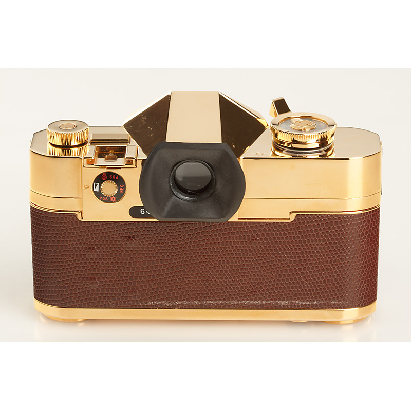 18 carat gold plated edition 71206 OR/GOLD with Kern-Macro-Switar 1.9/50mm no.1114747, cap, all papers, wooden presentations box, maker's box