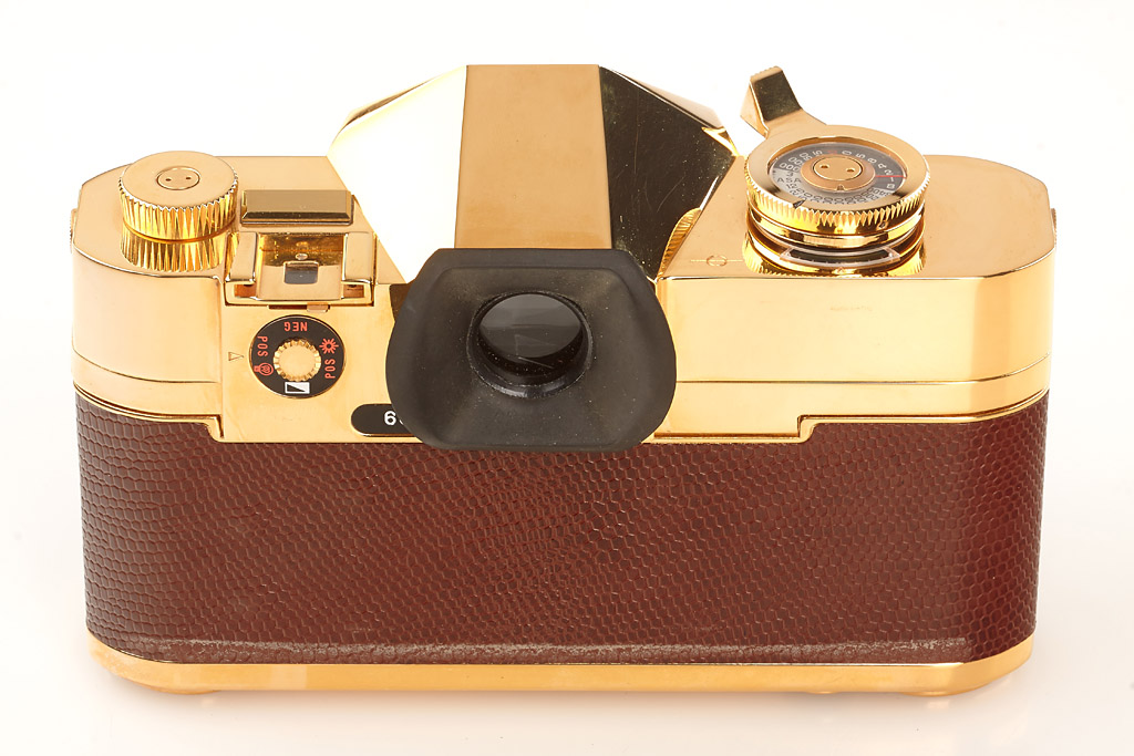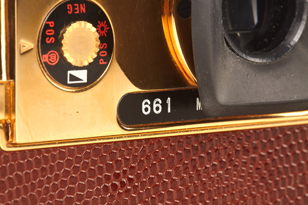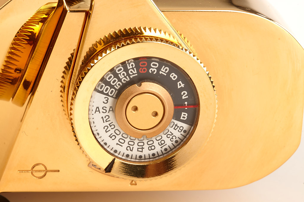 18 carat gold plated edition 71206 OR/GOLD with Kern-Macro-Switar 1.9/50mm no.1114721, cap, all papers, wooden presentations box, styrofoam box