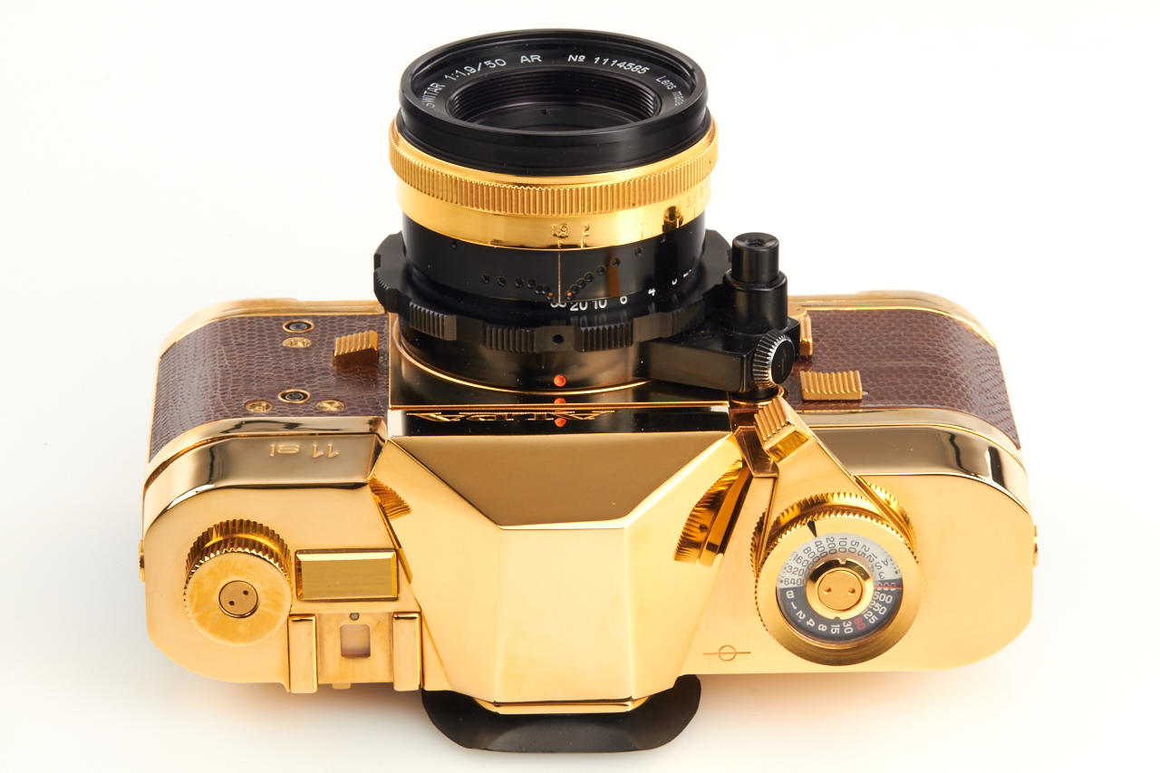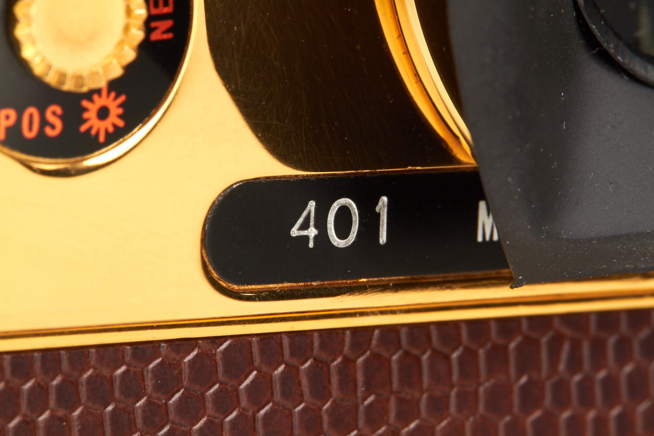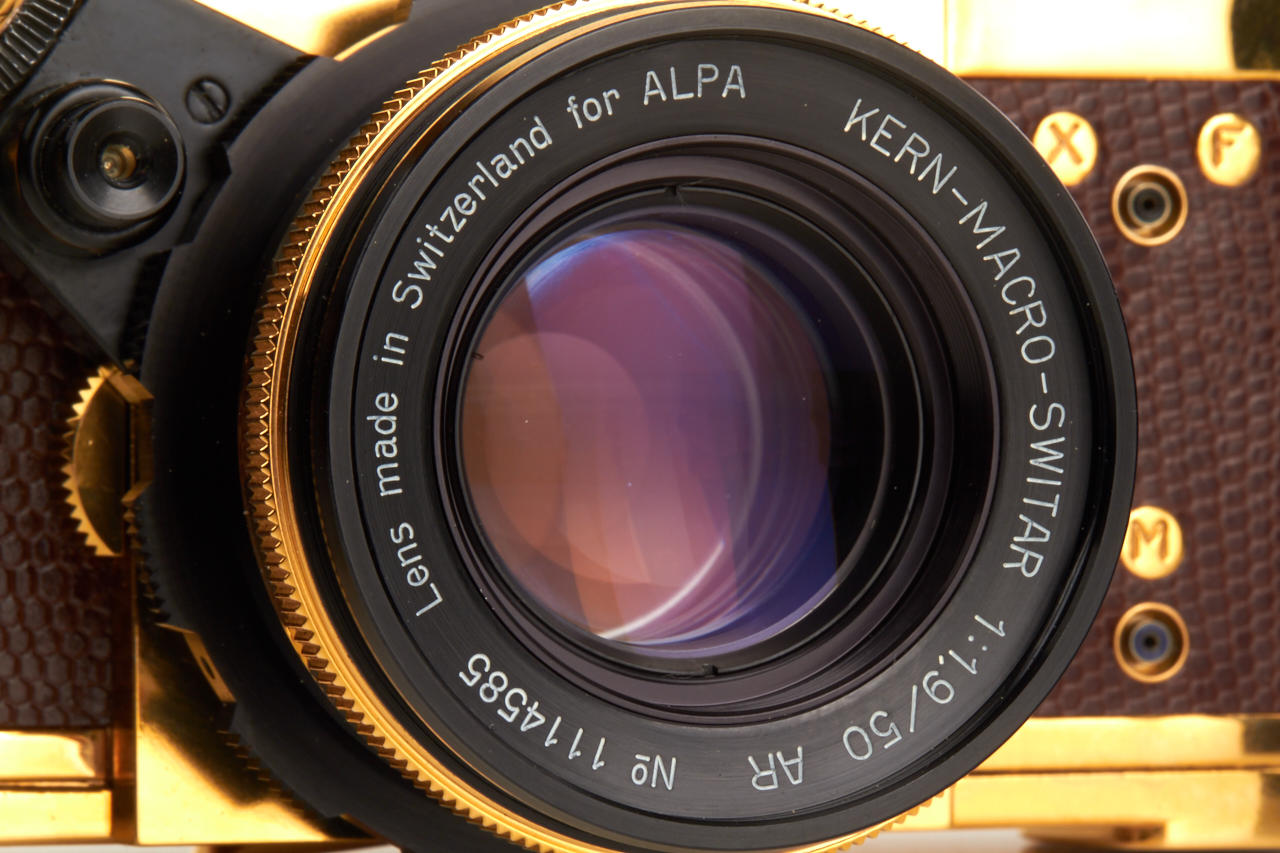 mint 18 carat gold plated edition 71206 OR/GOLD with Kern-Macro-Switar 1.9/50mm no.1114585, cap, certificate, brochures and presentation box