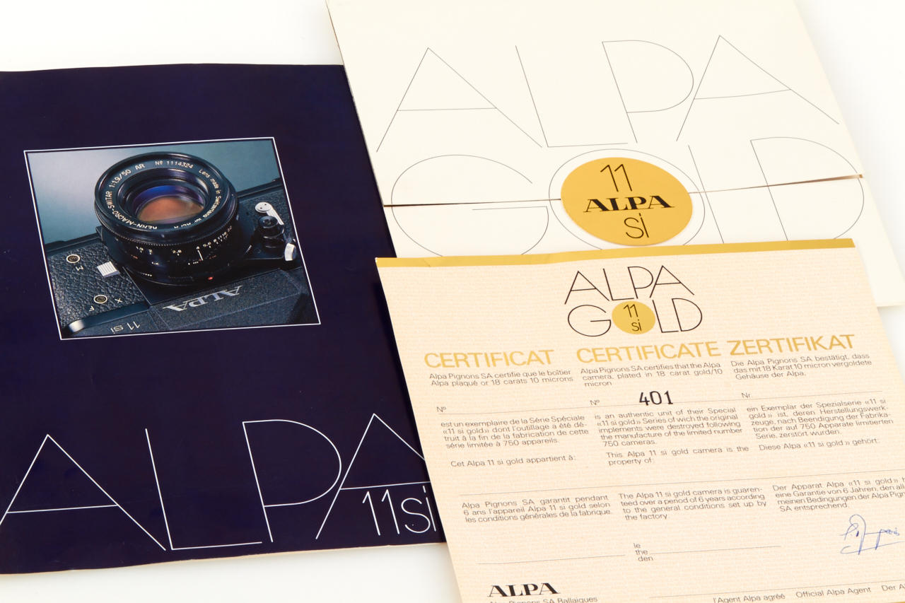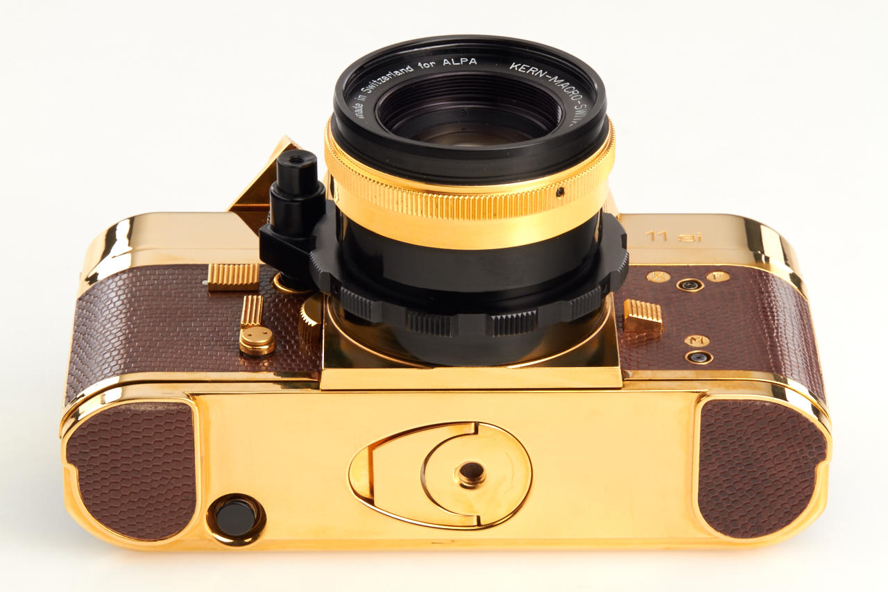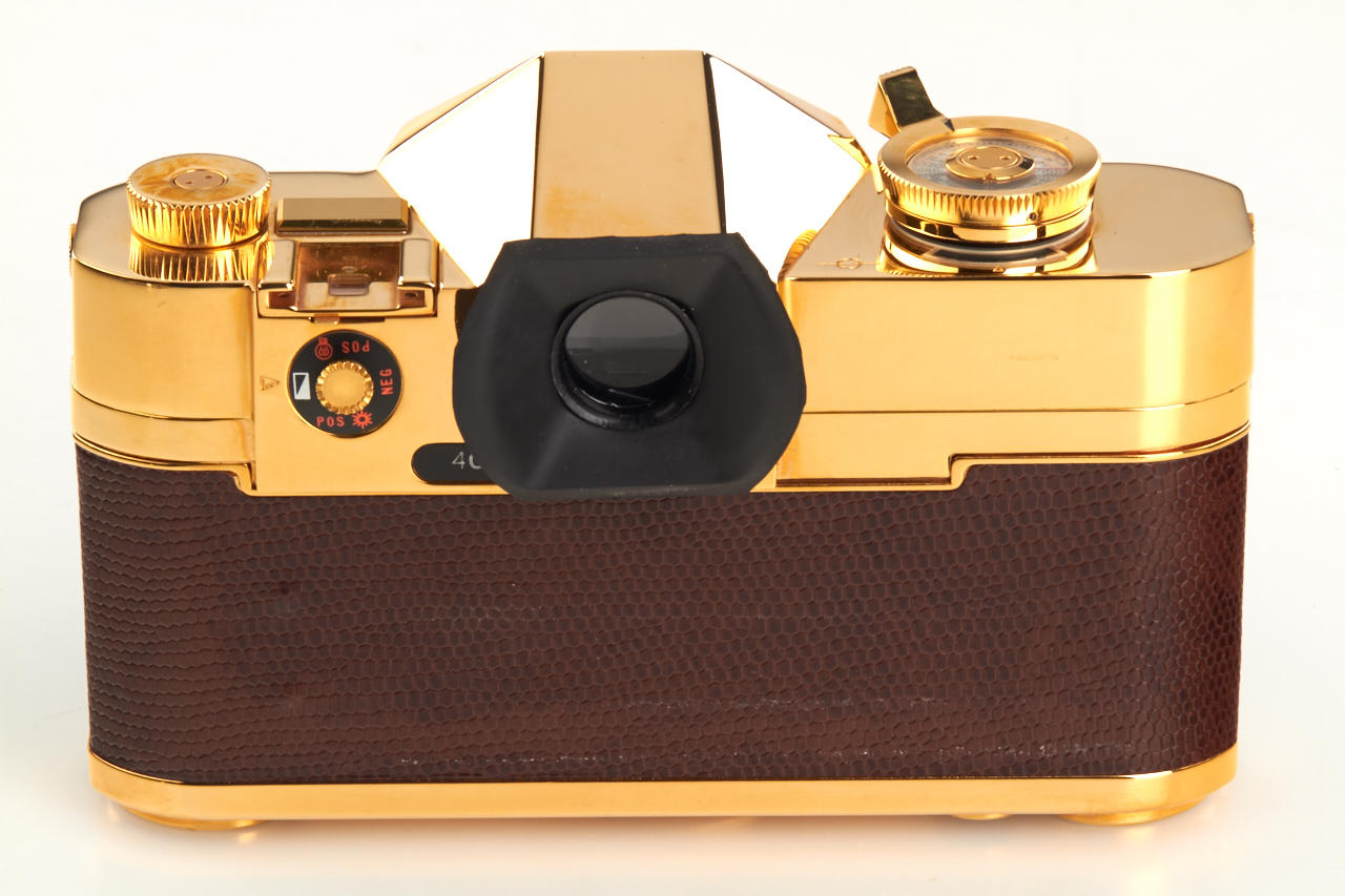 mint 18 carat gold plated edition 71206 OR/GOLD with Kern-Macro-Switar 1.9/50mm no.1114585, cap, certificate, brochures and presentation box