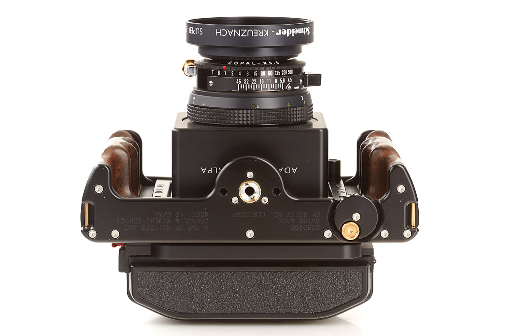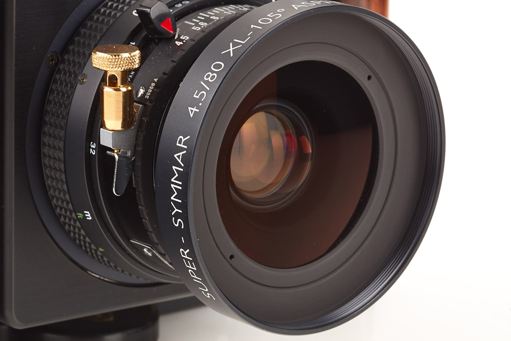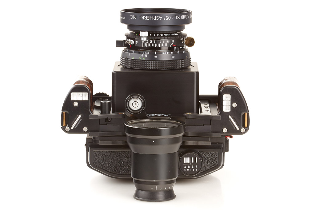 in mint condition with finder, Super-Symmar 4.5/80mm XL Aspheric no.14773579 with clean lenses in perfect working Copal-No.0 shutter (cap), Arca Swiss 6x9 roll film back