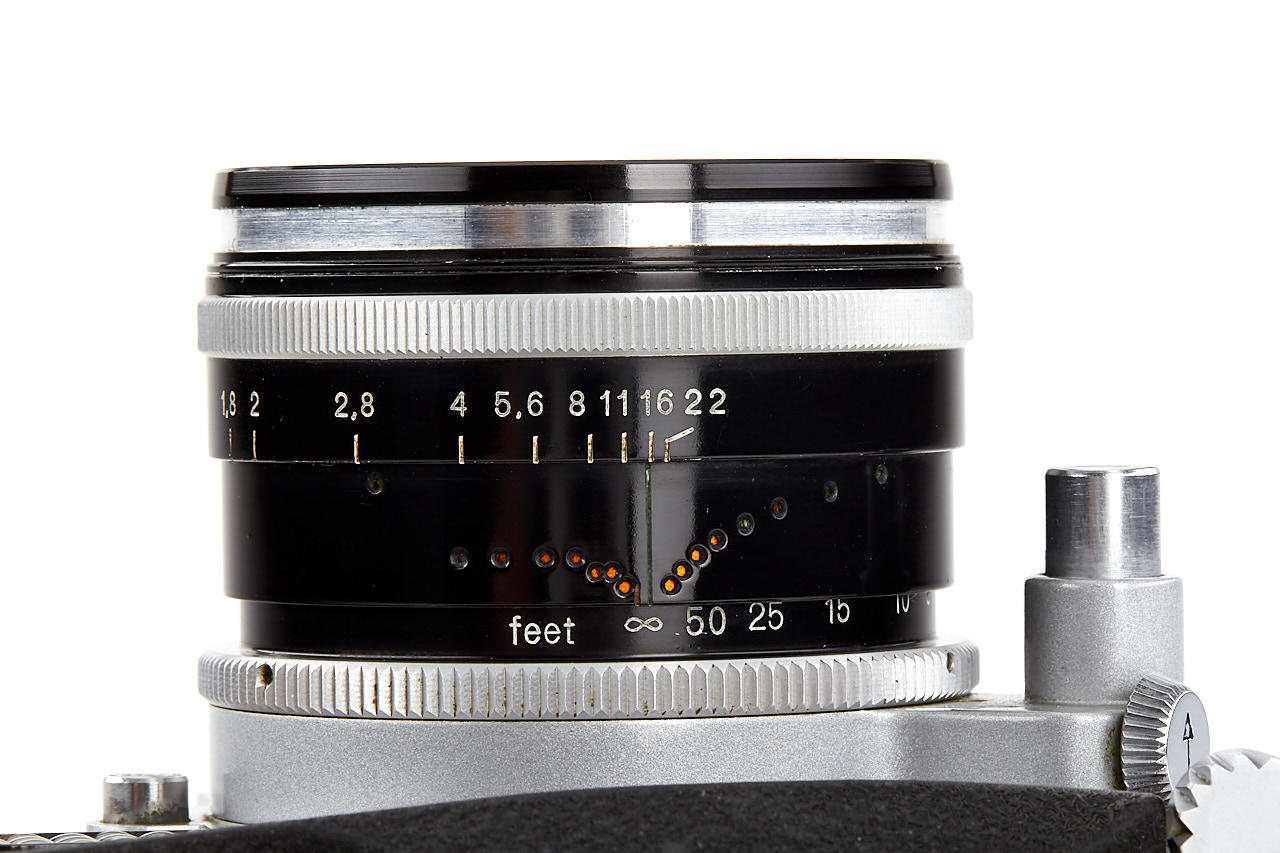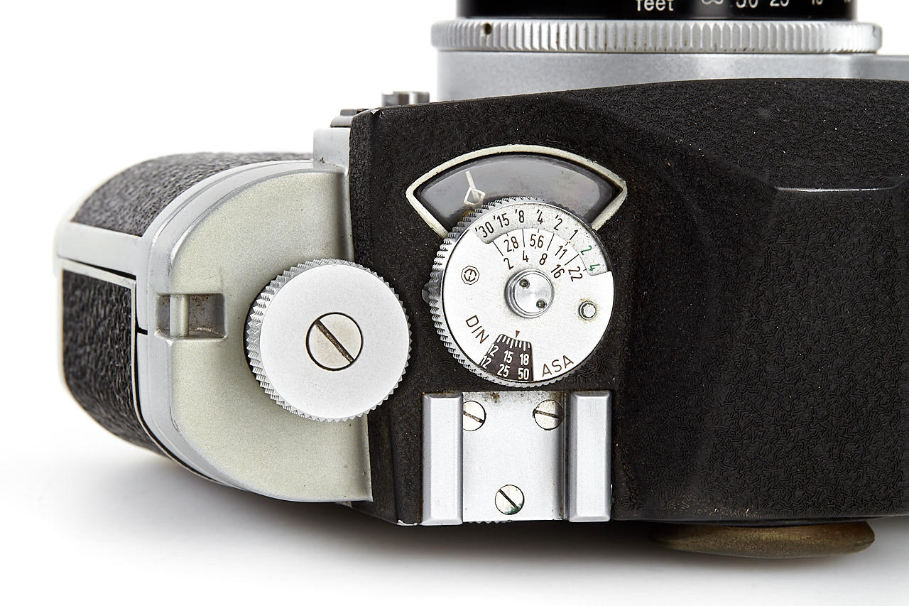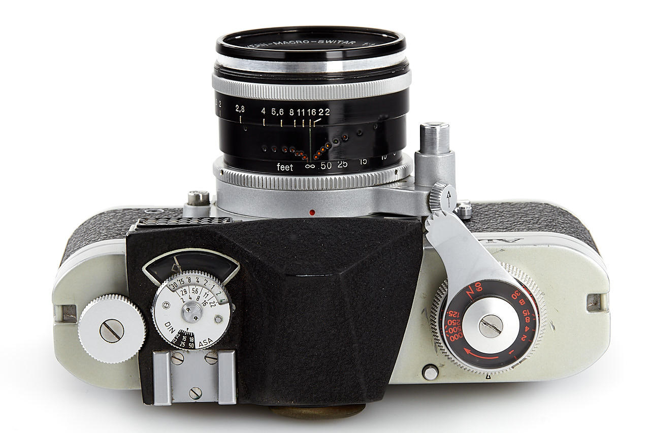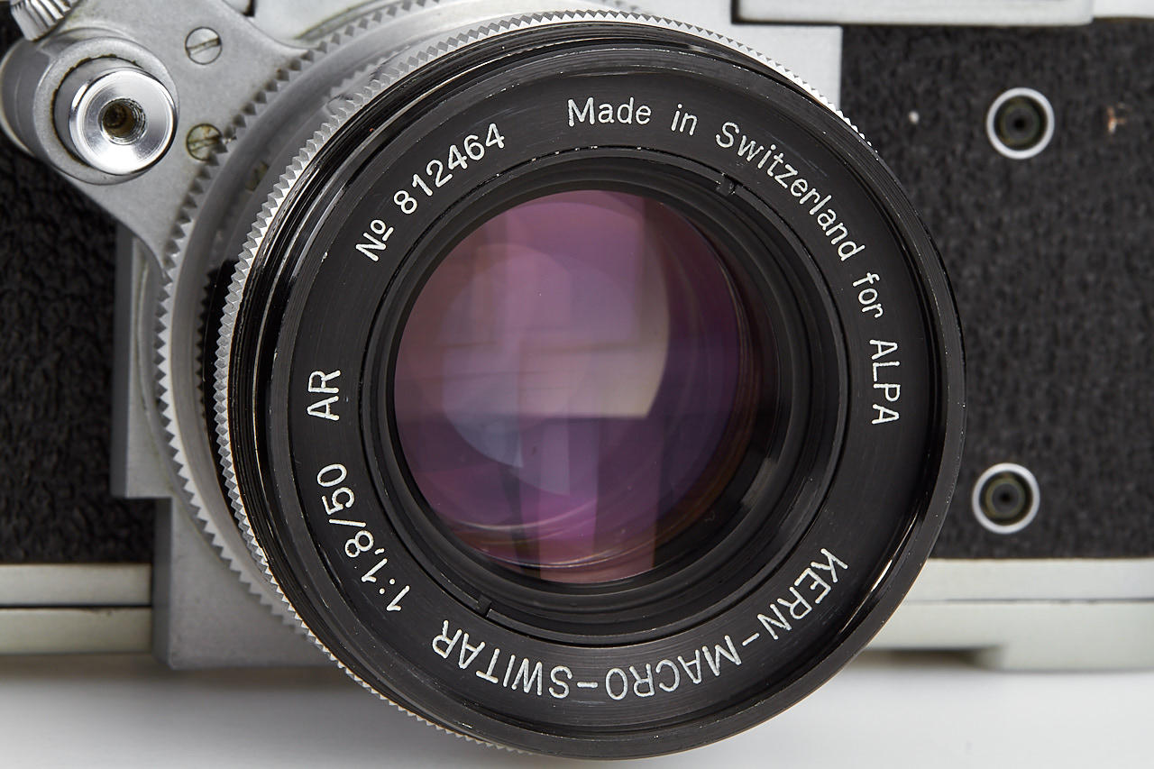 6c body from a first production batch, in beautiful condition, with sought-after Kern-Macro-Switar 1.8/50mm no.812464 (very good optics, only few hairline marks), lens cap