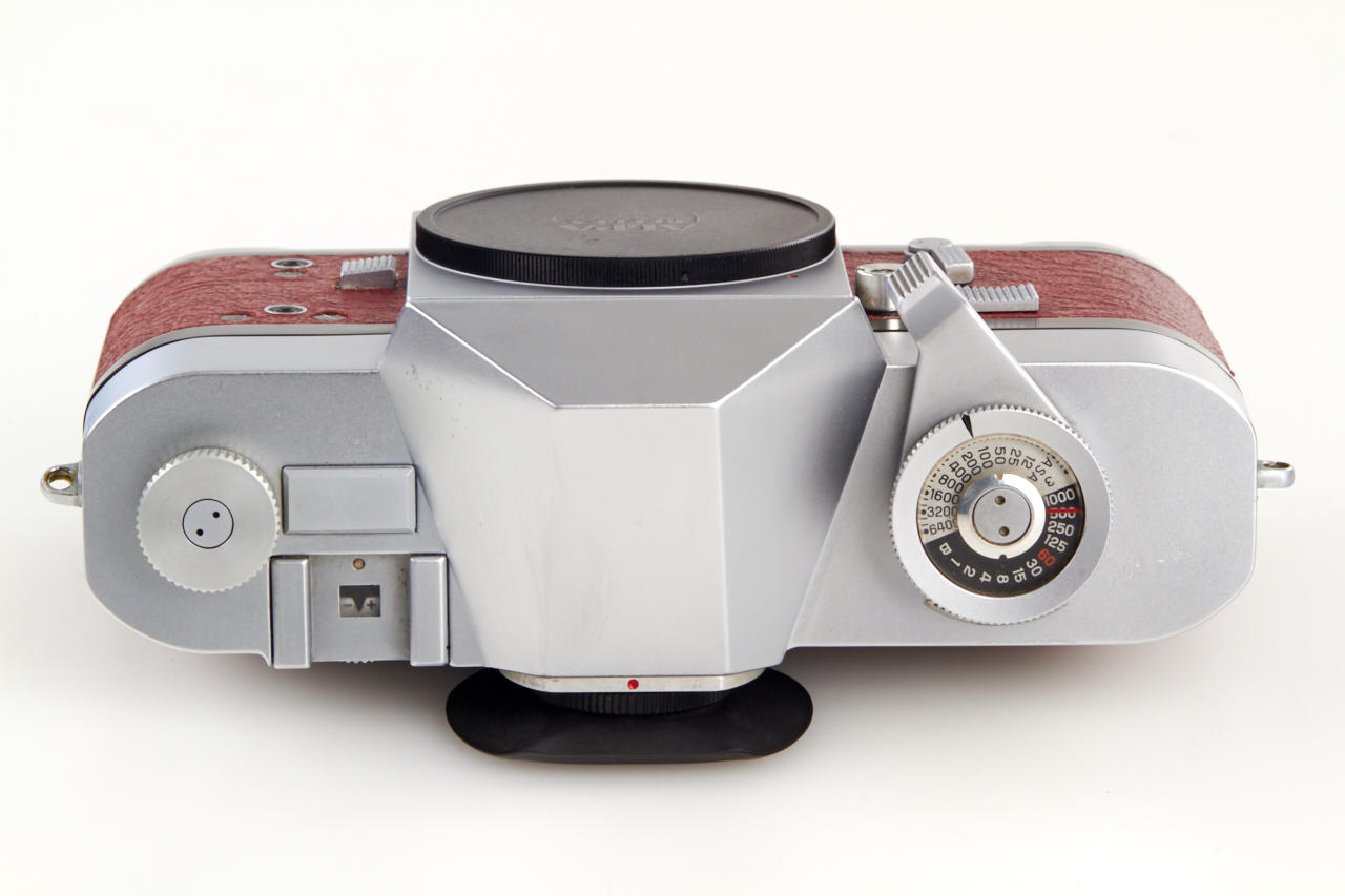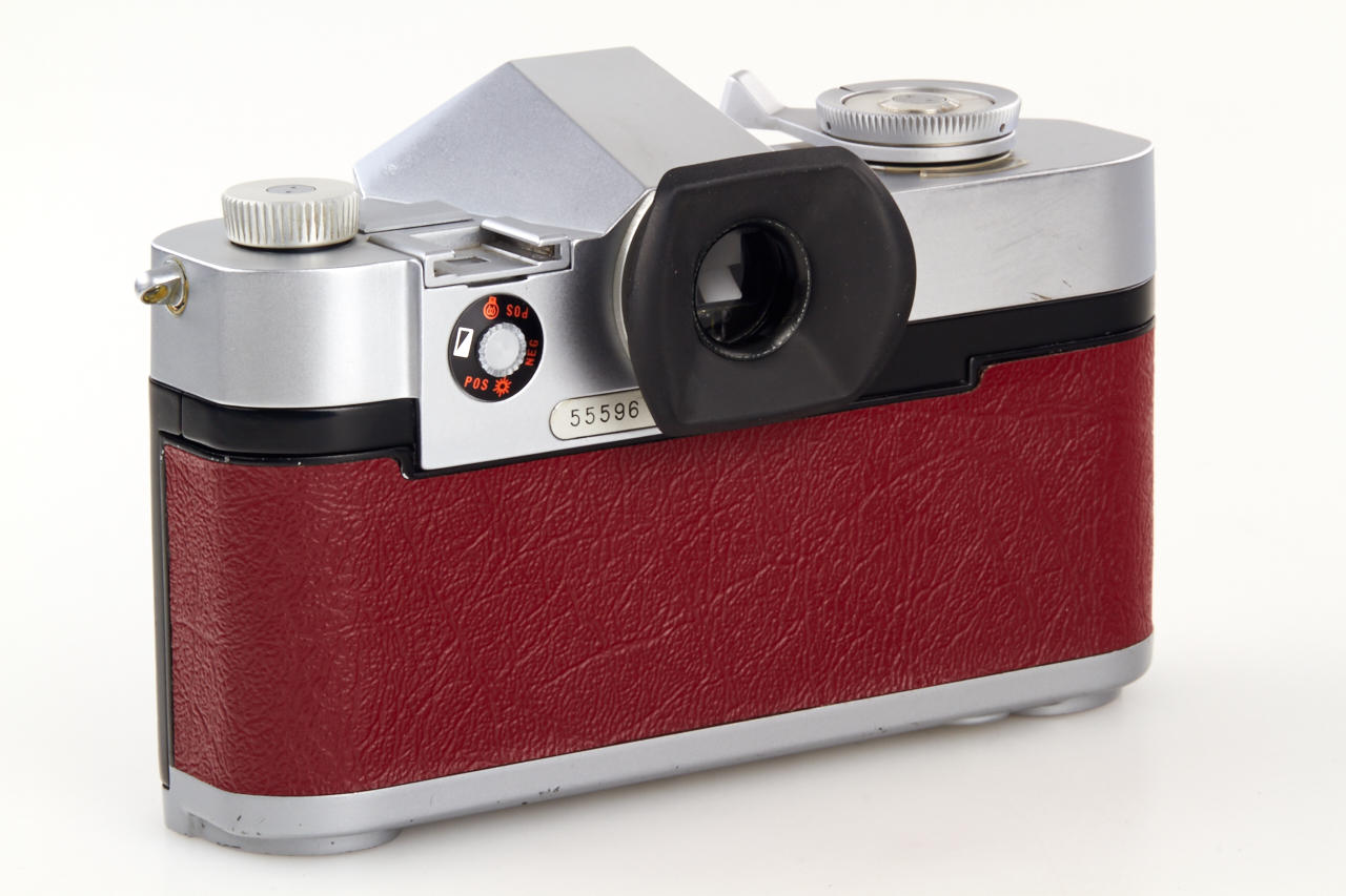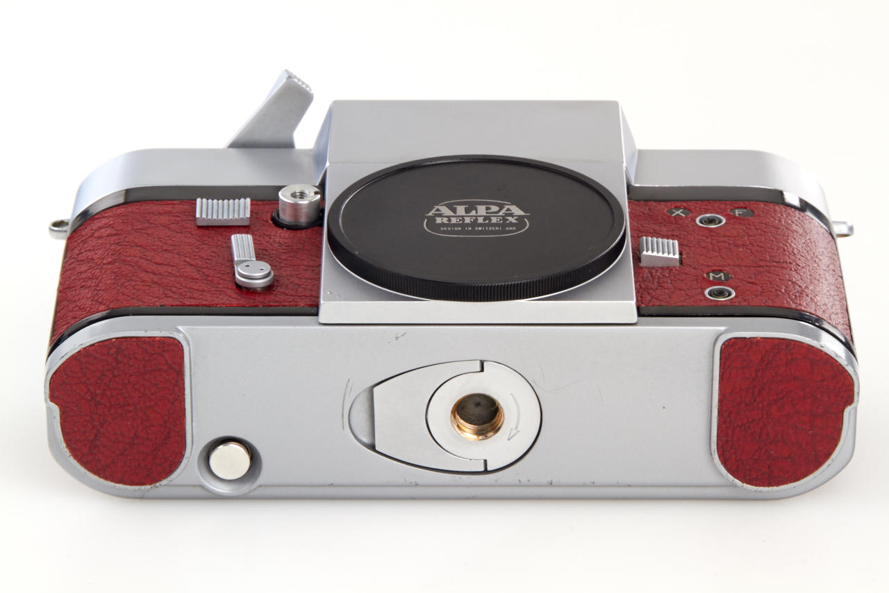 probably unique chrome Alpa 10d without engravings (except for the serial number on the rear), red leather covering, in near mint condition and perfect working order
