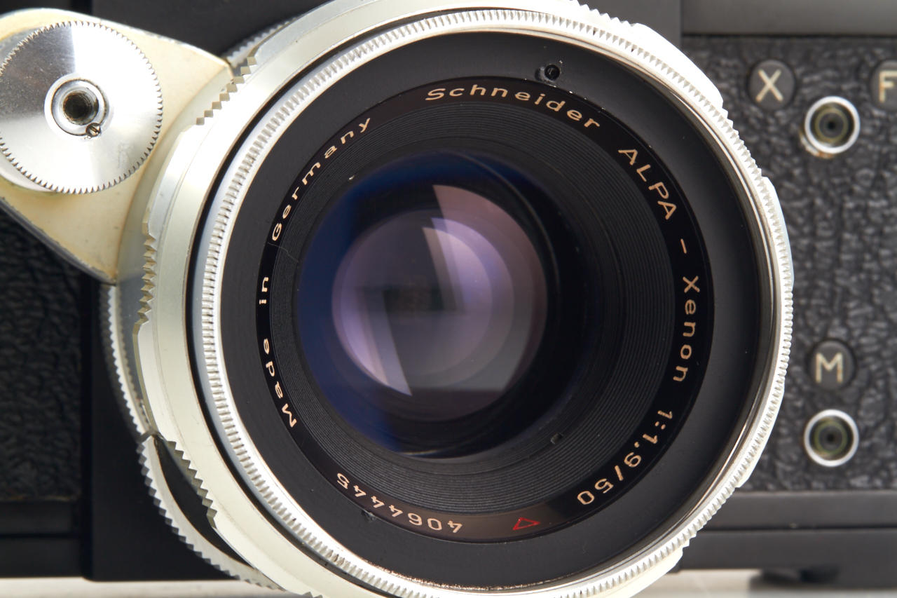 chrome body in near mint condition and perfect working order, with chrome Schneider Alpa-Xenon 1.9/50mm no.4064445, Alpa lens cap, Esblak everready case in maker's box