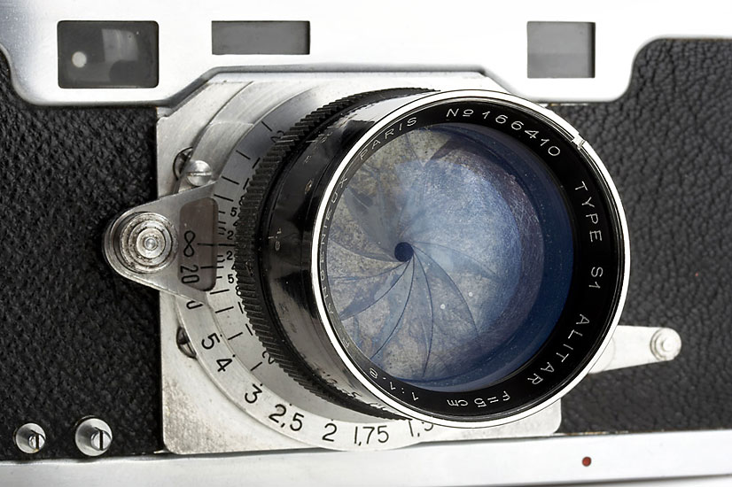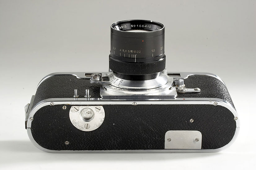 very rare camera in fine and fully working condition, back door engraved with same serial number, matching black Angenieux Alitar Type S1 1.8/5cm no.166410