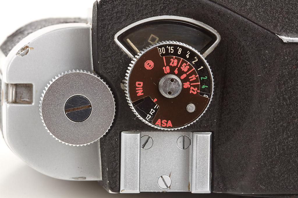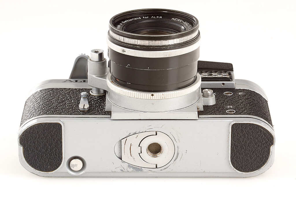 chrome body with good working shutter (meter not operable), Kern-Macro-Switar 1.8/50mm AR no.931838 (some fine cleaning marks, cap, hood), everready case