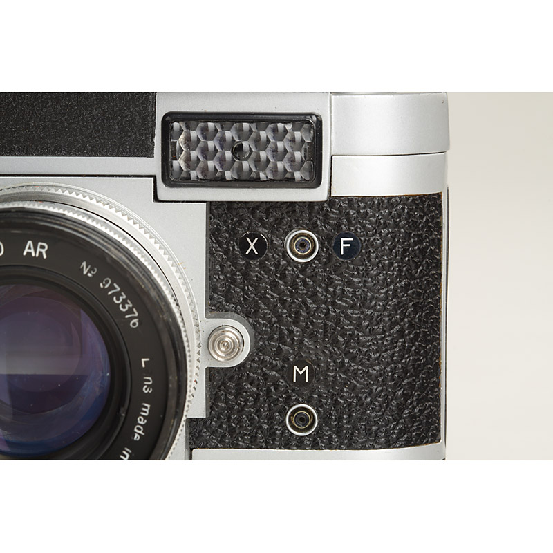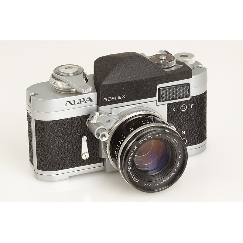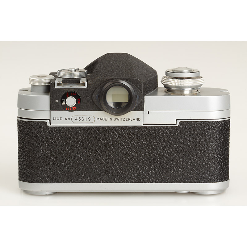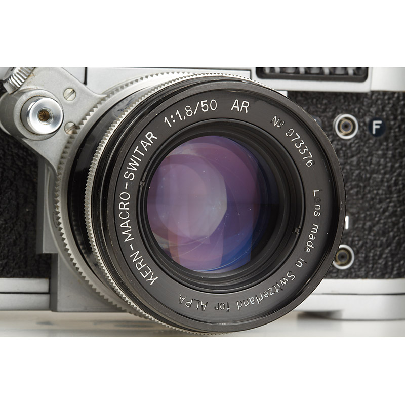 chrome 6c body in near mint condition (working selenium meter), Kern-Macro-Switar AR 1.8/50mm no.973376 (hazy), original hood
