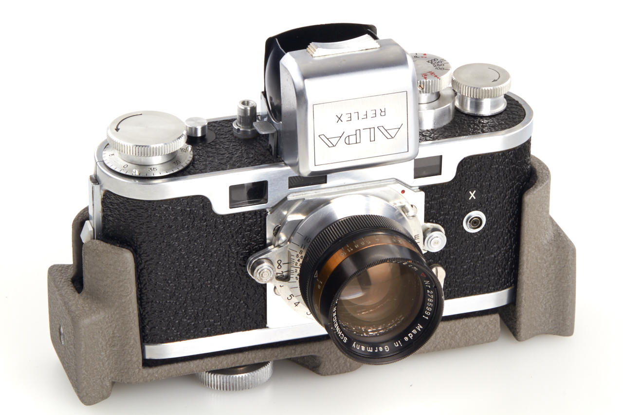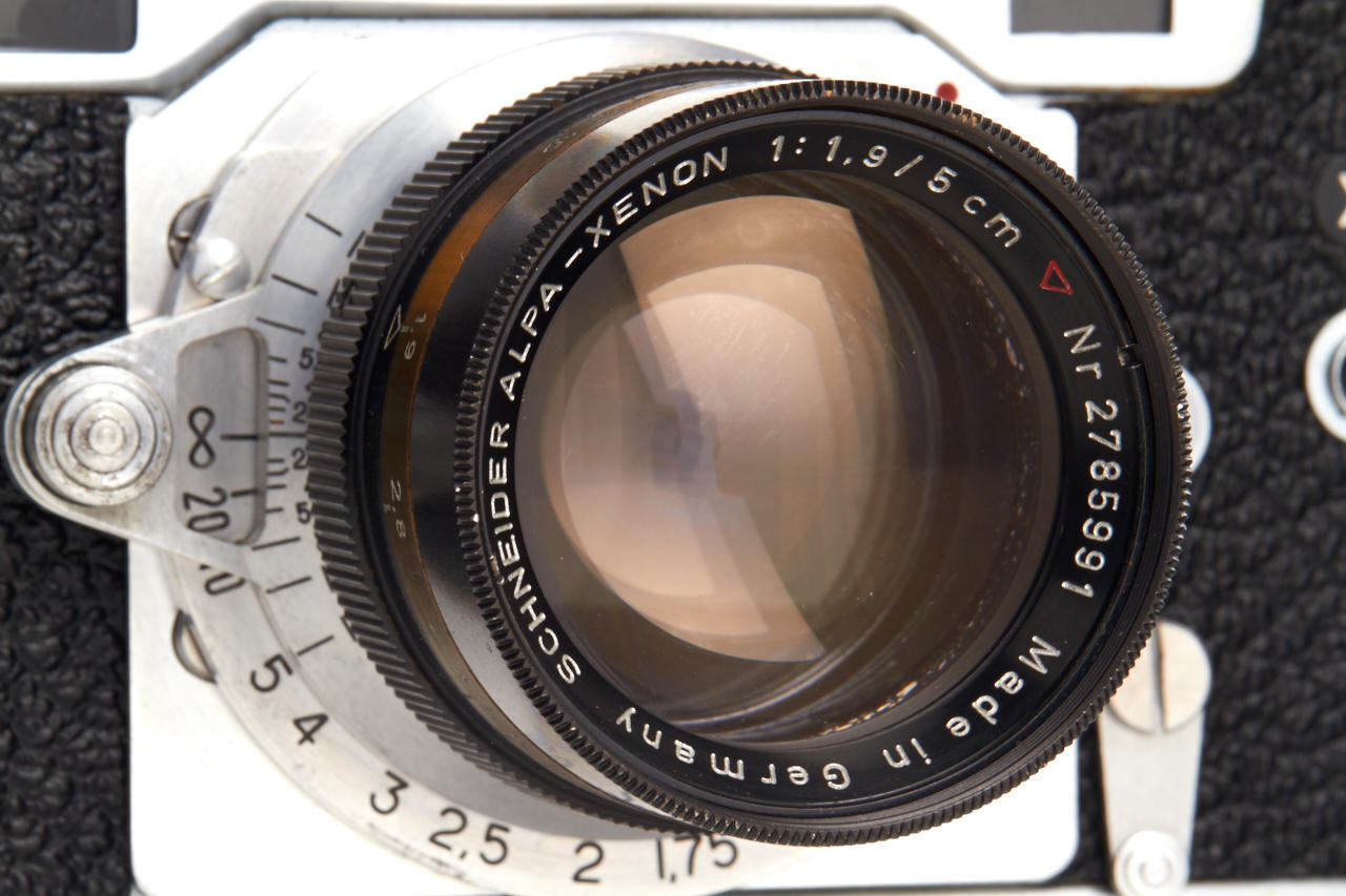 in amazing mint condition and perfect working order, rare late synchronized version (one of only 519 cameras produced), matching serial number in the back, with Schneider Alpa-Xenon 1.9/5cm no.2785991, tripod holder, front cap and Alpa Lenses brochure, a camera which is very hard to find in this condition!