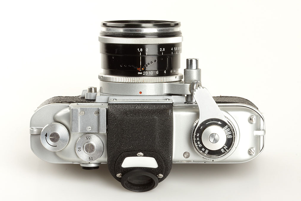 very rare body (total production 64 units only) in perfect working condition, coupled rangefinder (not accurate) and 45° prism finder, Kern Switar 1.8/50mm no.97331, original cap and hood