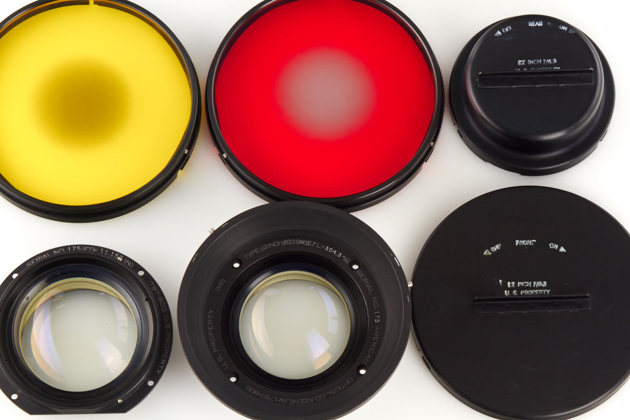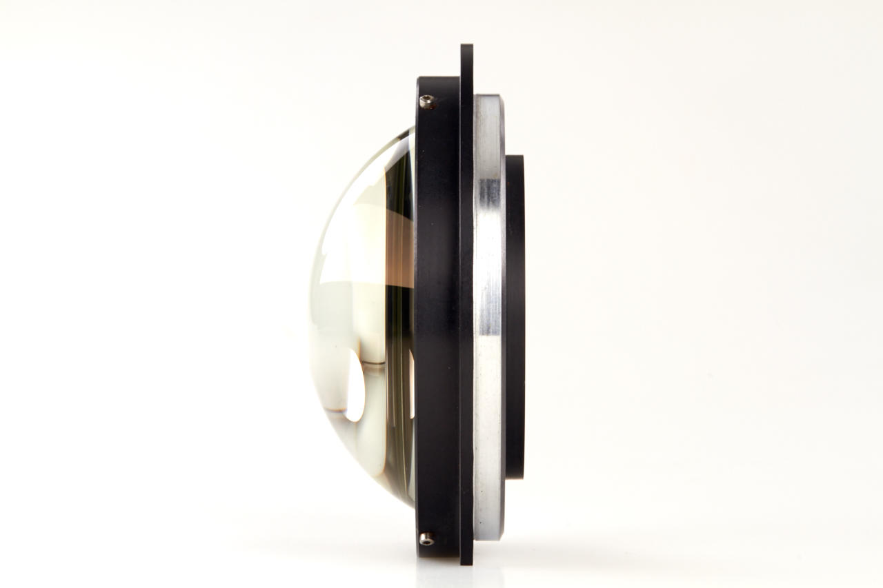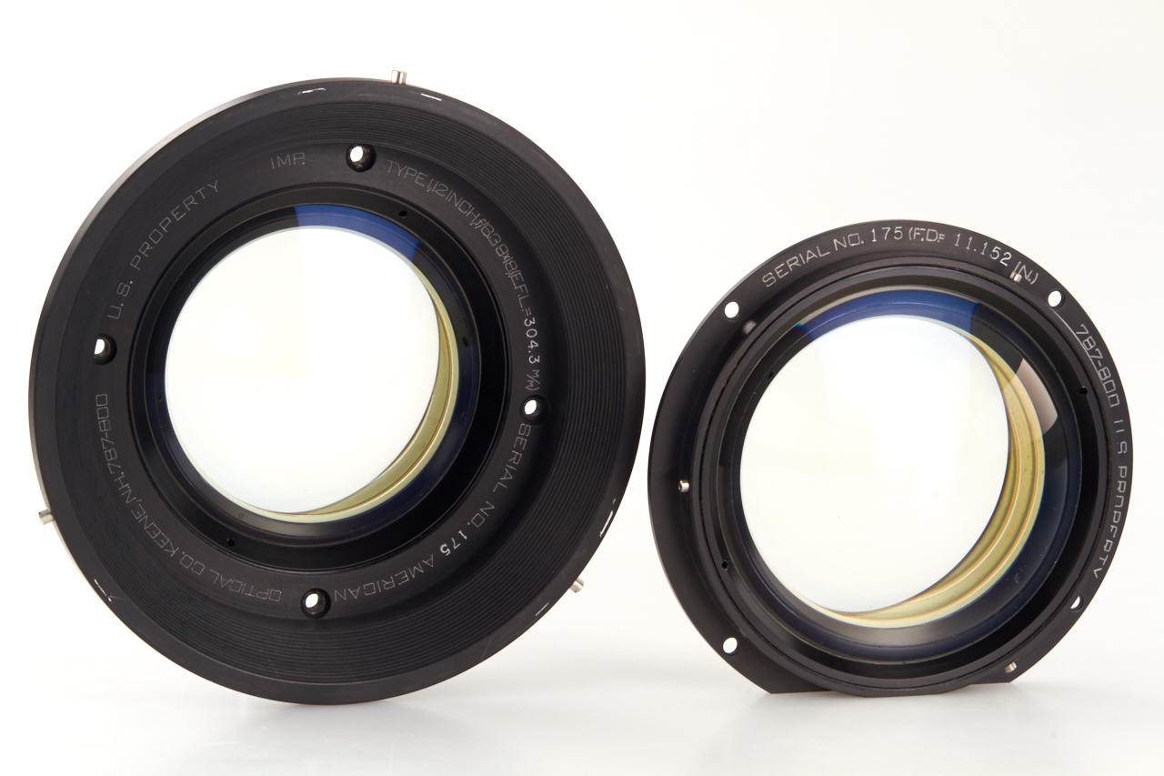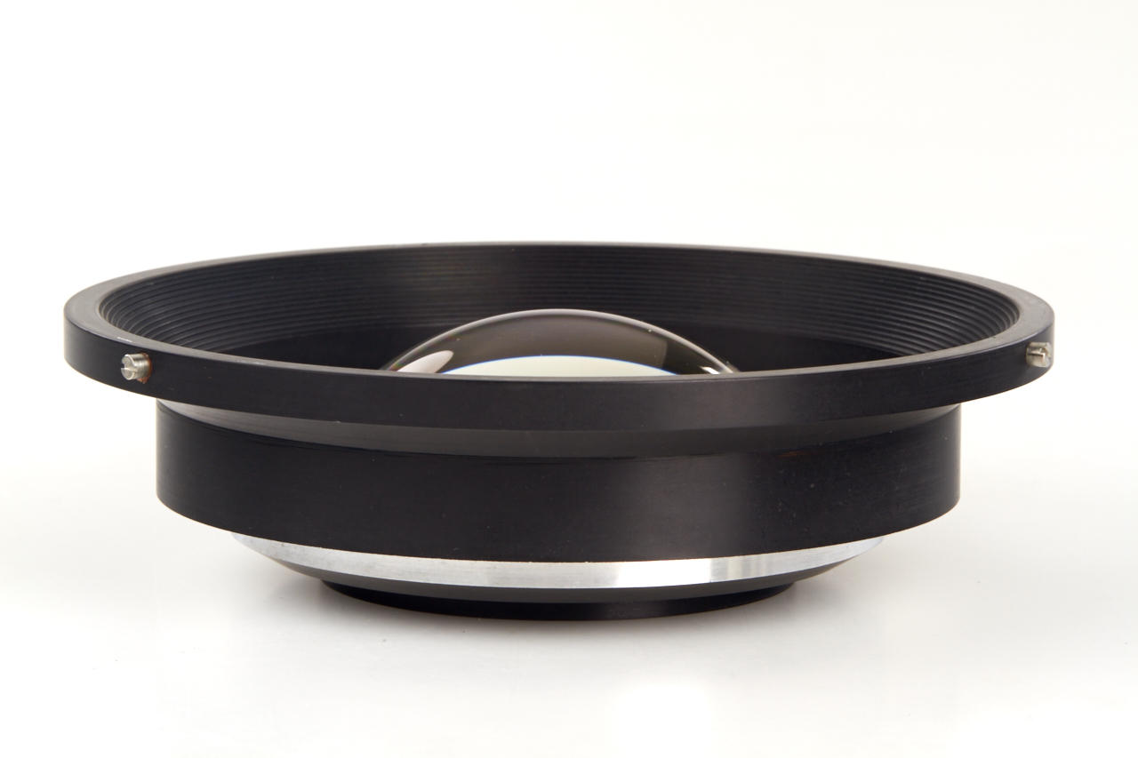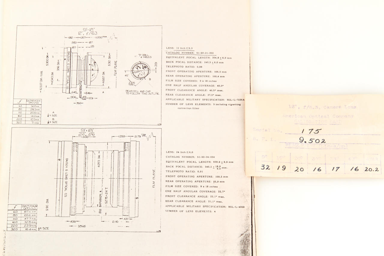 Topogon-style large format ultra wide angle lens, focal length 12" (304mm), covering 18"x18" large format, made in very small quantity for aerial photography, technical specification from the included sheet: Lens: 12 Inch s/6.3 Catalog number: 51-90-21-002 Equivalent focal length: 304.8 +- 6.0mm Back focal distance: 240.5+-6.0mm Telephoto ratio: 0.88 Front operating aperture: 166.5mm Rear operating aperture: 168.4mm Film size covered: 9x18 inches One half angular coverage 40.0° Front clearance angle: 40.5° max. Rear clearance angle: 37.5° max. Applicable military specification: MIL-L-7236A Number of lens elements: 5 including vignetting correction filter, the lens is in like new condition, both front and rear elements have original caps, two filters (red and yellow), maker's box