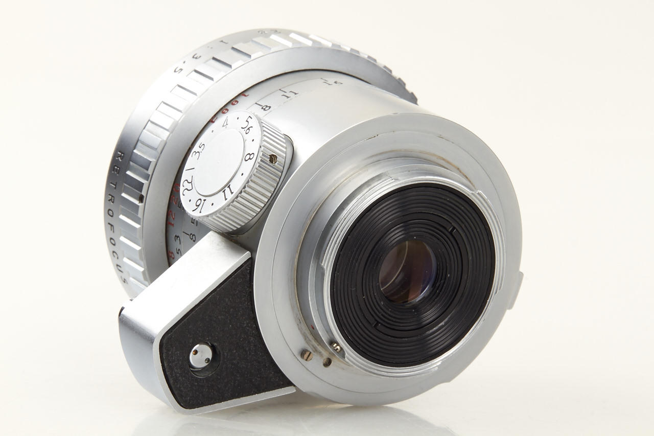 chrome automatic Retrofocus lens for Exakta, in fine condition, clean optics (little scratch on front element), with both caps