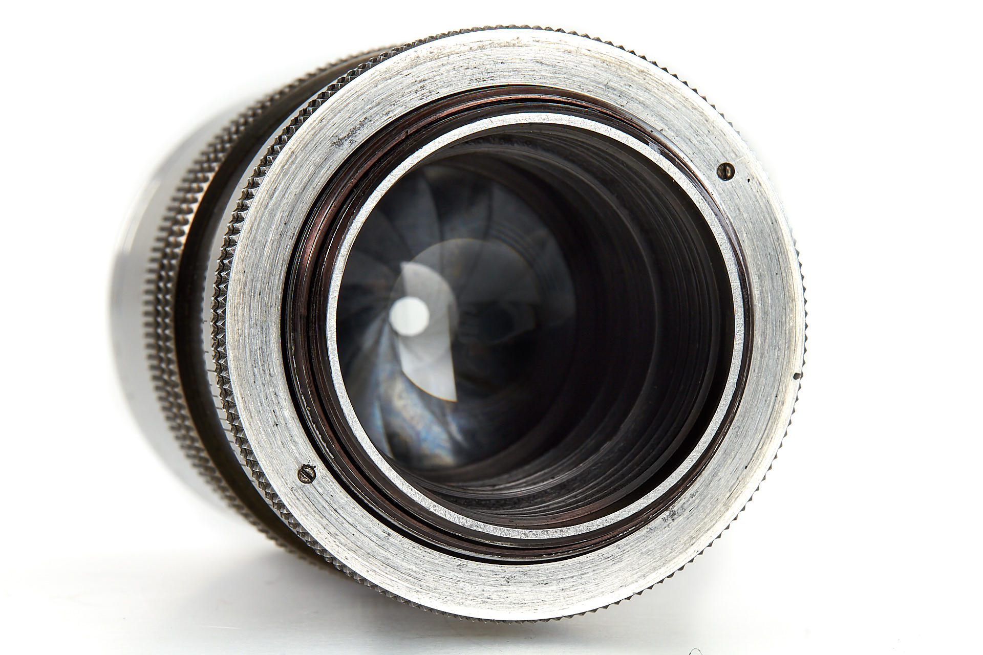 original rangefinder-coupled lens for M39, black/chrome, clean optics, filter rim slightly dented, with both caps and leather case