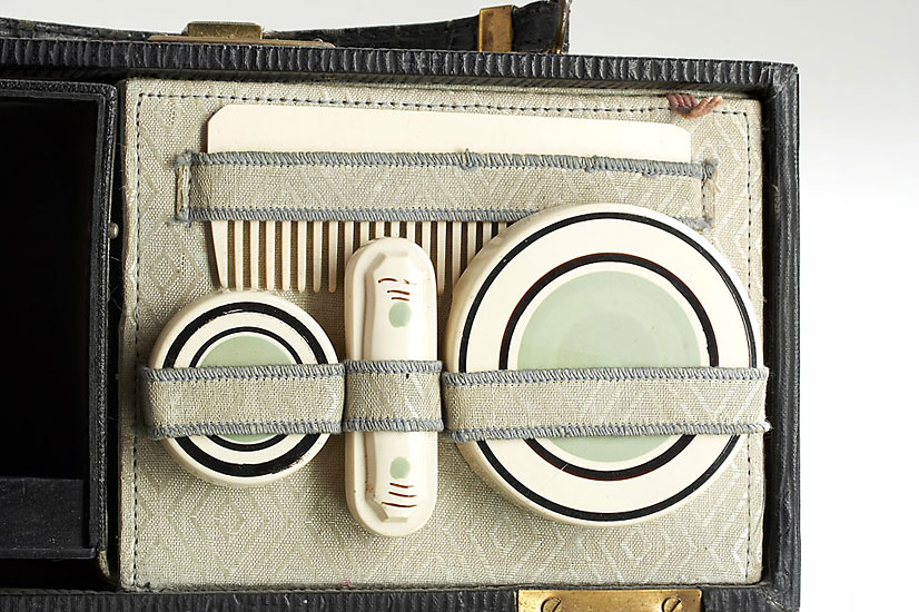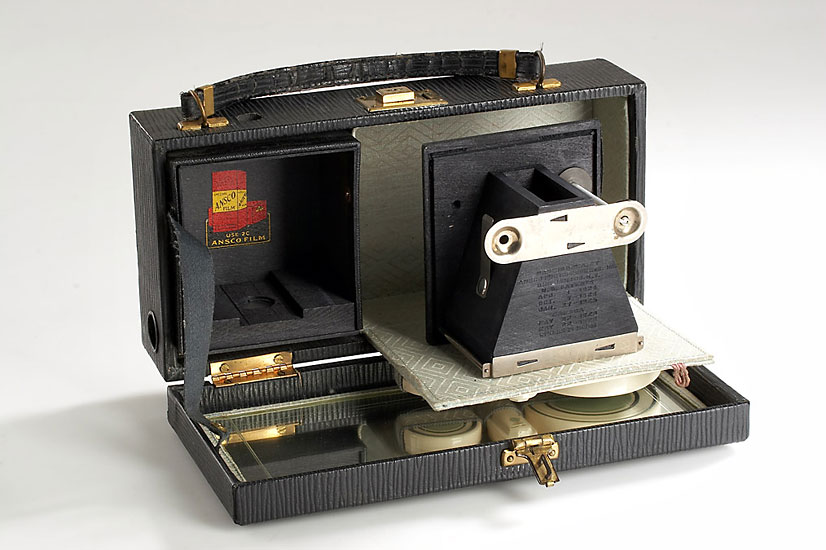 Ansco box camera concealed in beauty case, rare complete set with black case in fine condition
