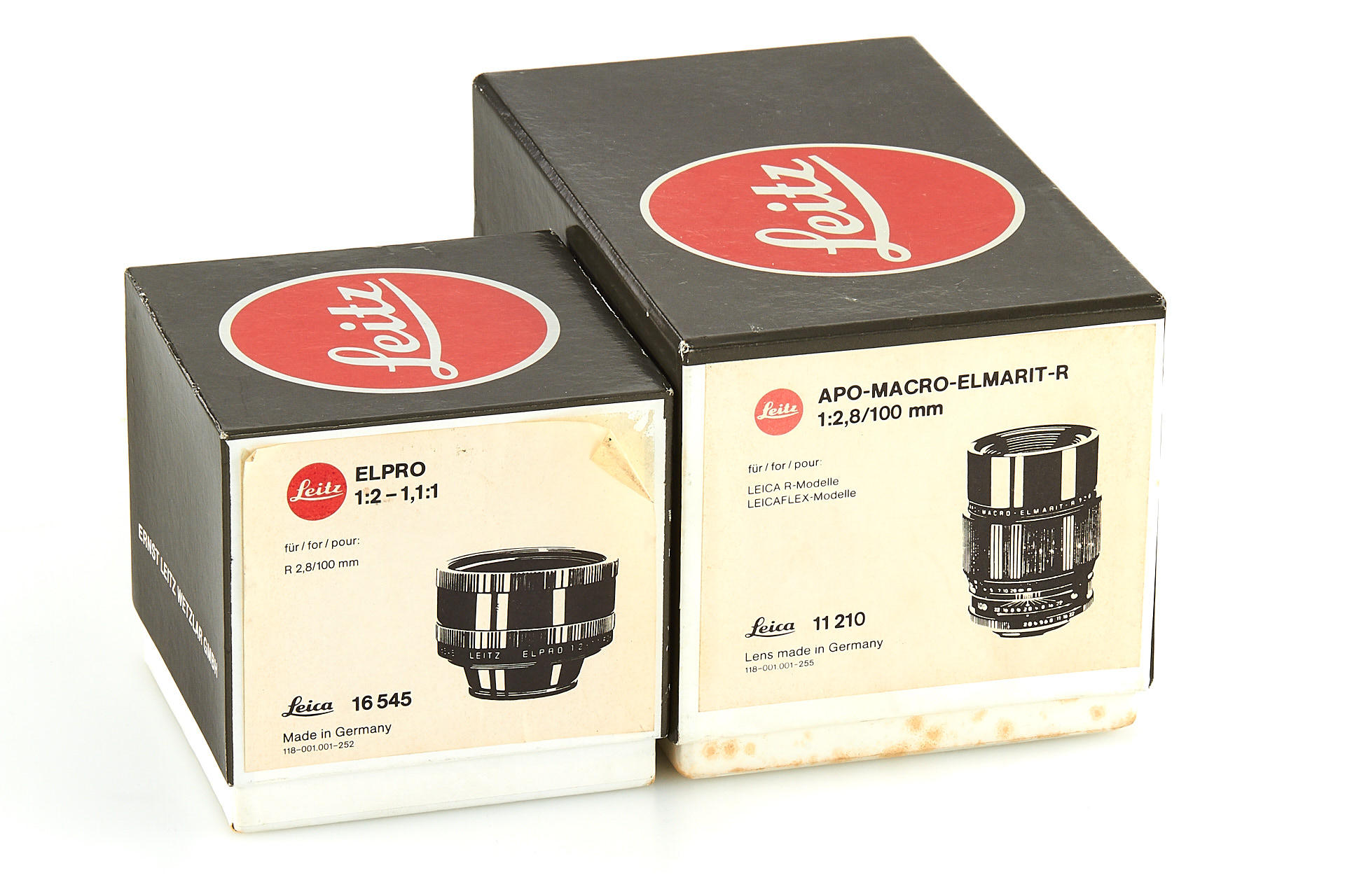 in very fine condition, clean lenses, with Elpro 1:2-1:1.1 16545, both with keeper and maker's box