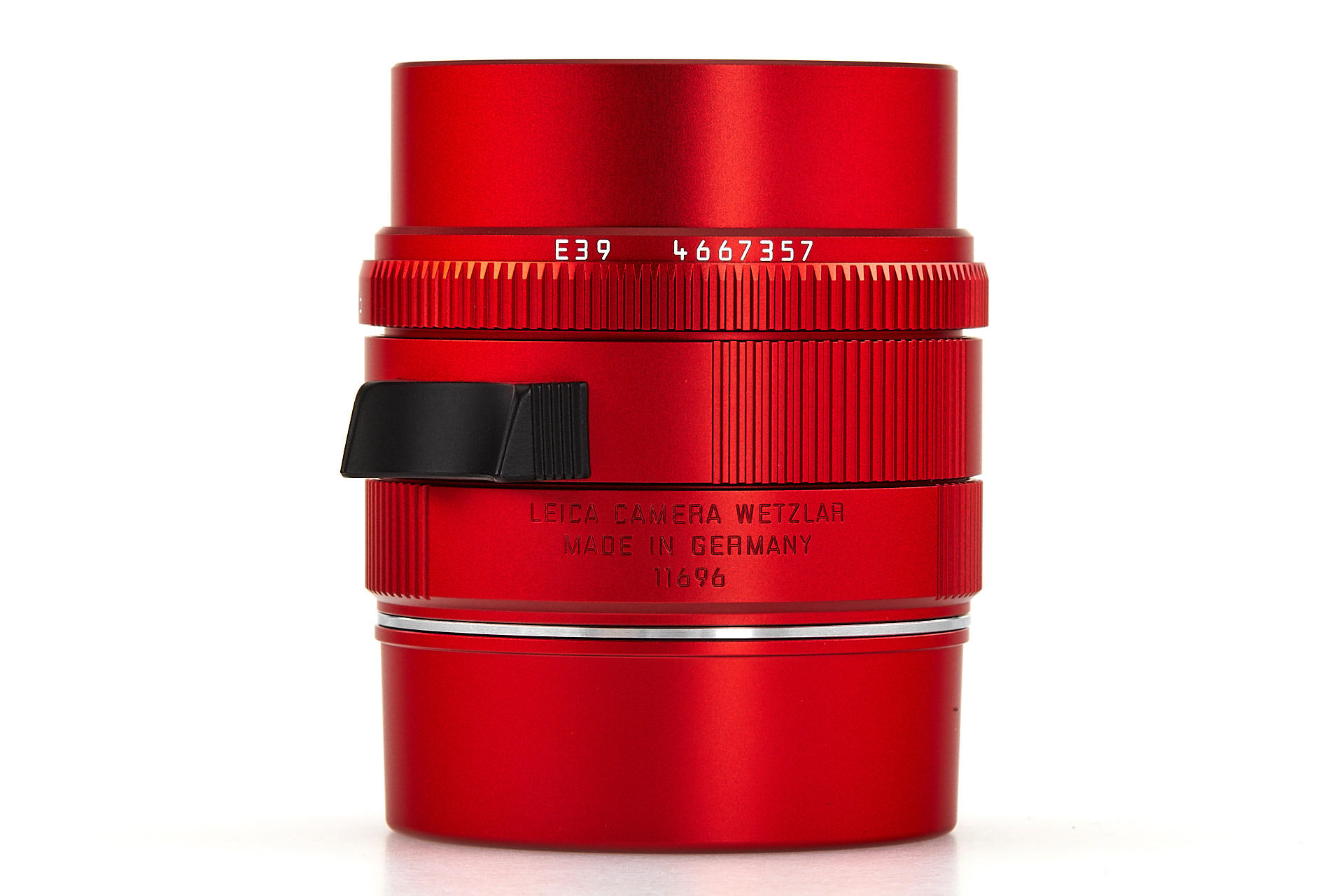 sought-after red anodized Apo-Summicron, from a limited edition of only 100 lenses, in new condition, complete with maker's box, all accessories and papers