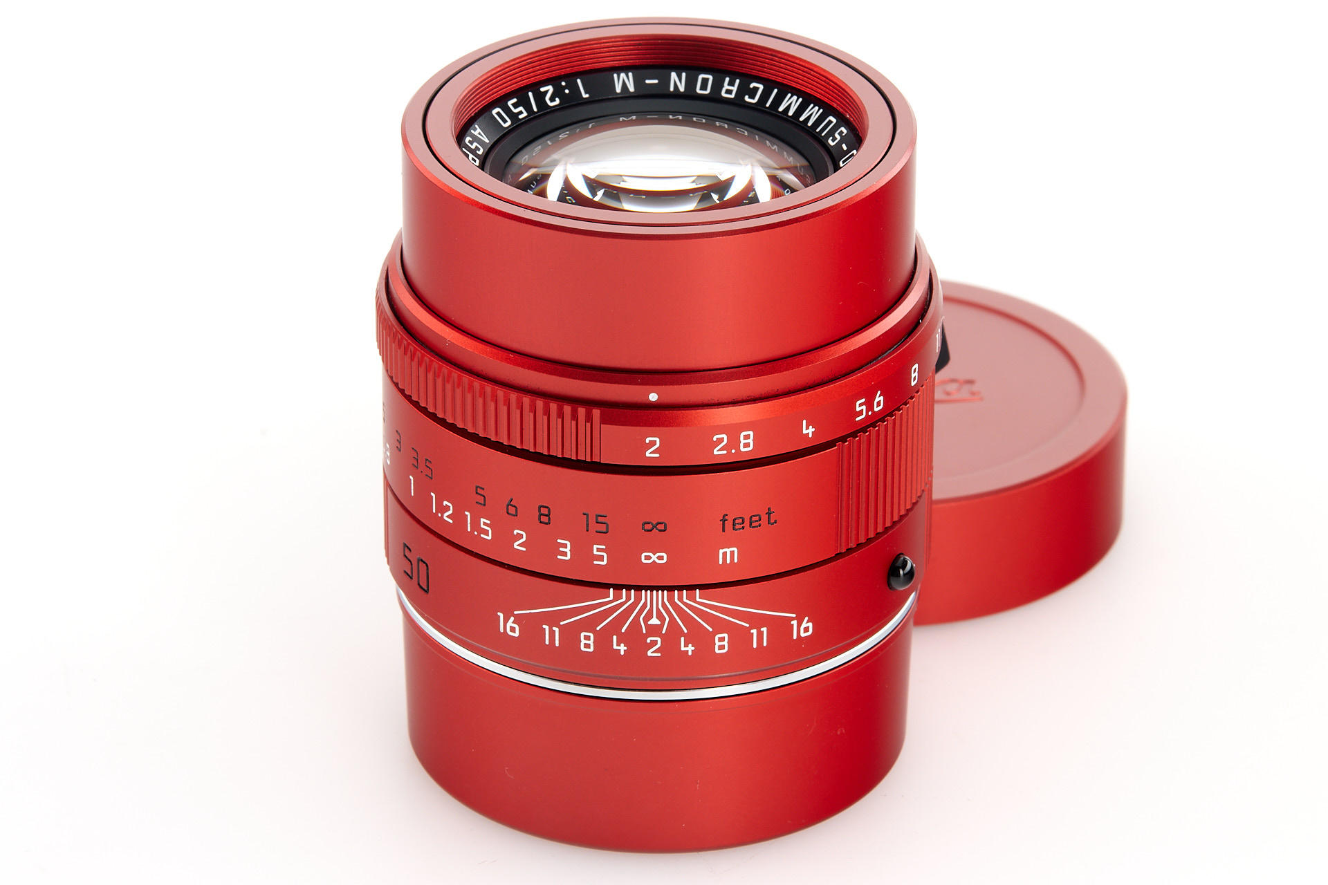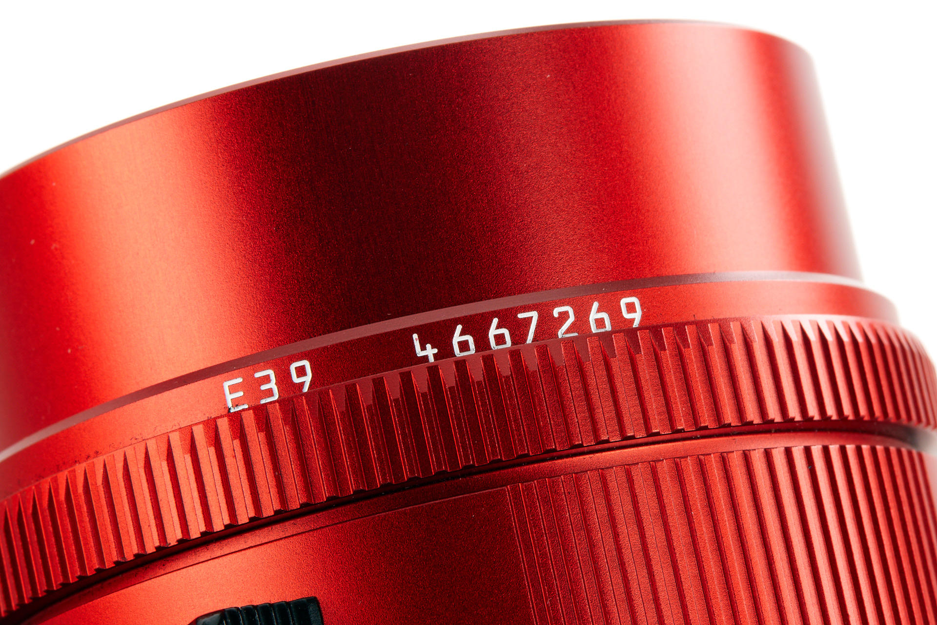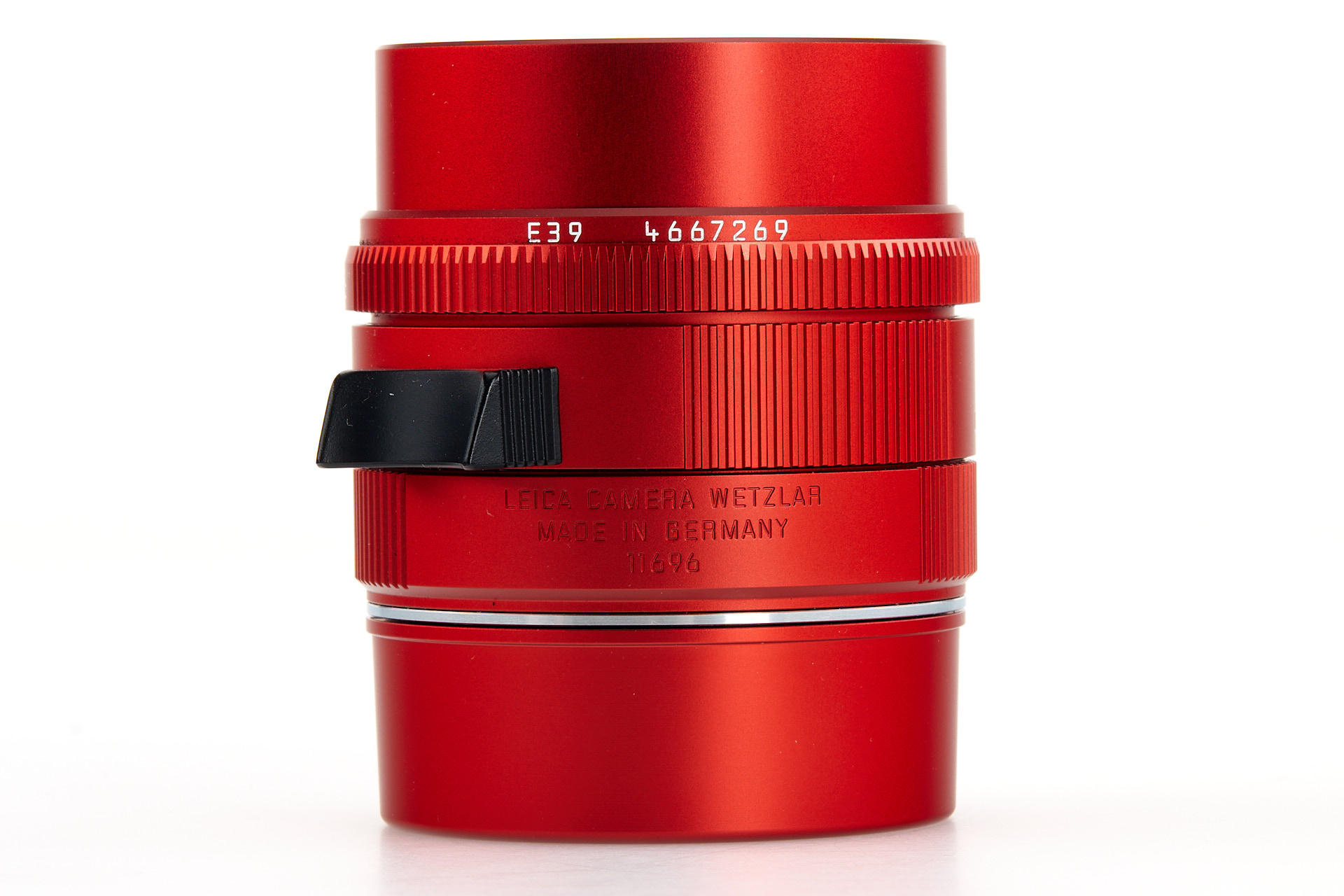 sought-after red anodized Apo-Summicron, from a limited edition of only 100 lenses, in new condition, complete with maker's box, all accessories and papers