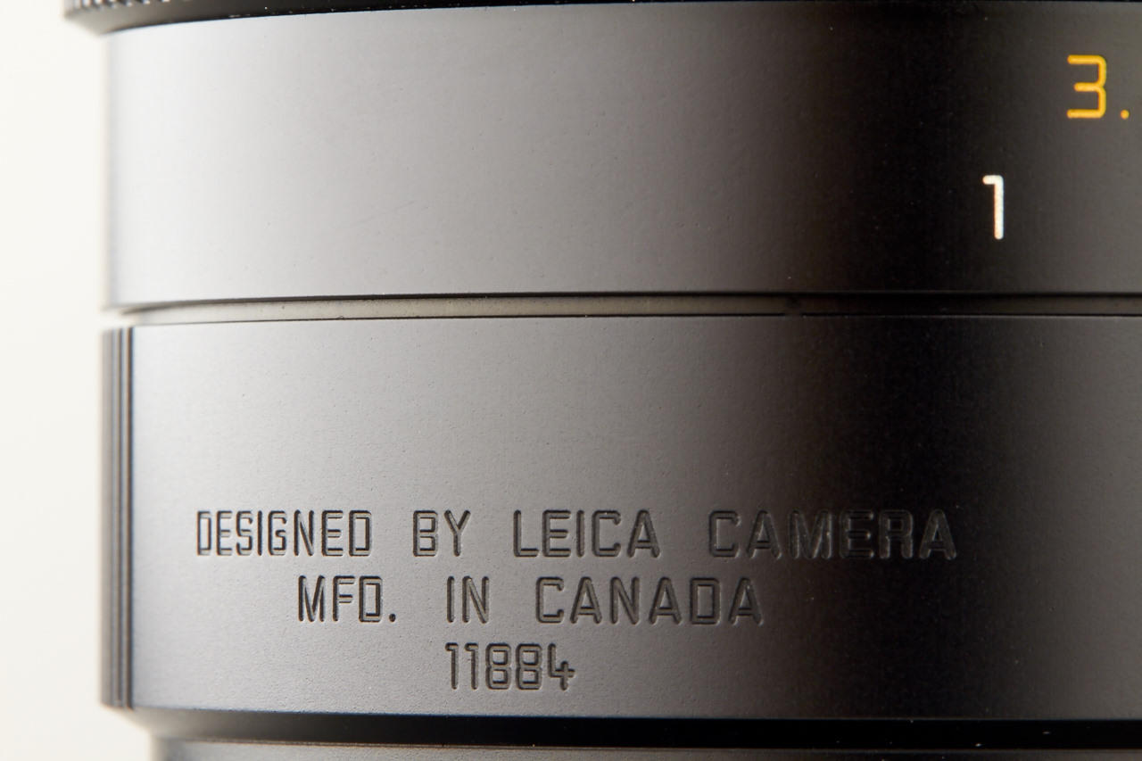 one of only 12 lenses produced as samples by ELC, engraved 'DESIGNED BY LEICA CANADA MFD. IN CANADA 11884', before the production of the lens moved to Germany - in perfect condition with clean optics, both caps