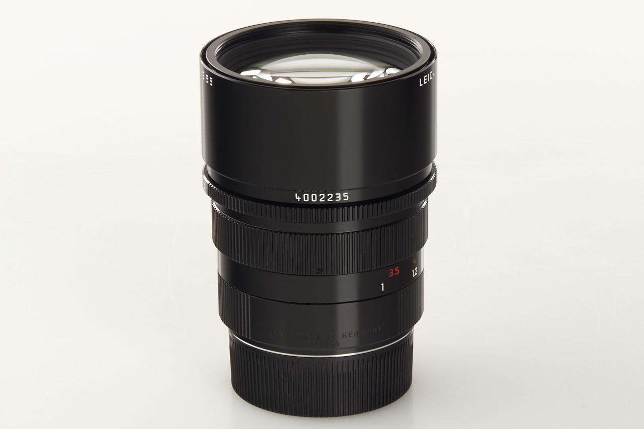 rare lens in black paint finish, in new condition, with both caps, leather case and maker's box