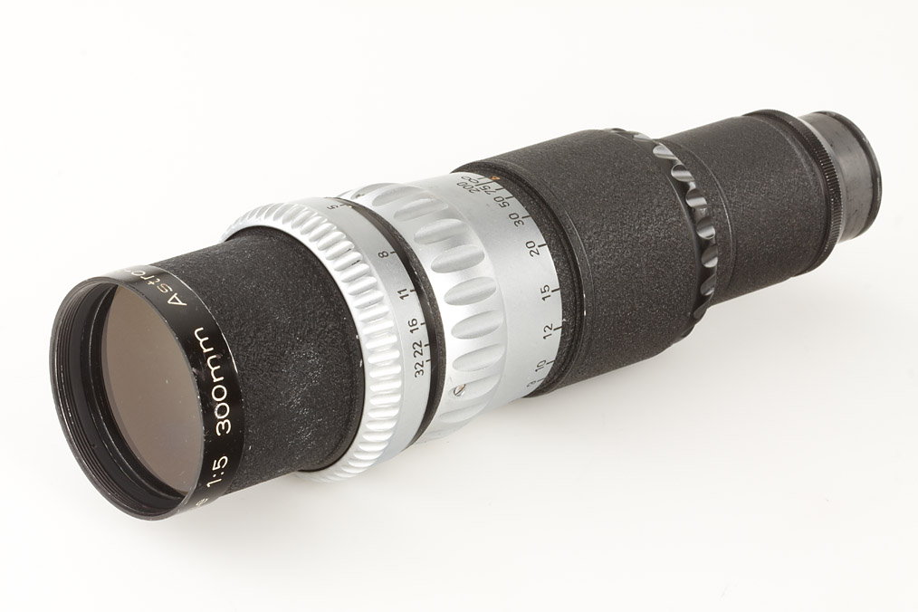 (1) Pan-Tachar 2.3/125mm no.32091 in Arriflex standard mount, hood, caps, (2) Fernbildlinse C 5/300mm no.62414 in Arriflex standard mount, small marks inside, hood, cap (2)