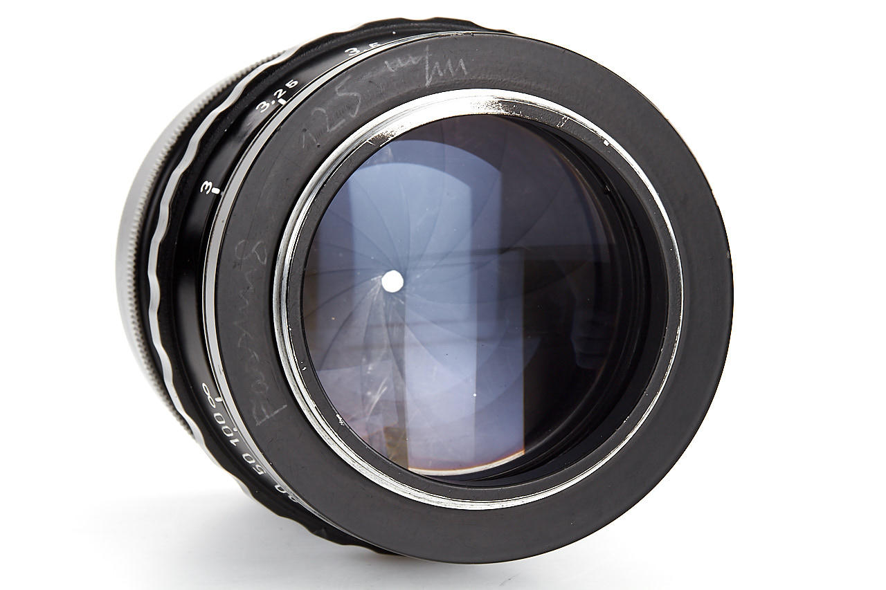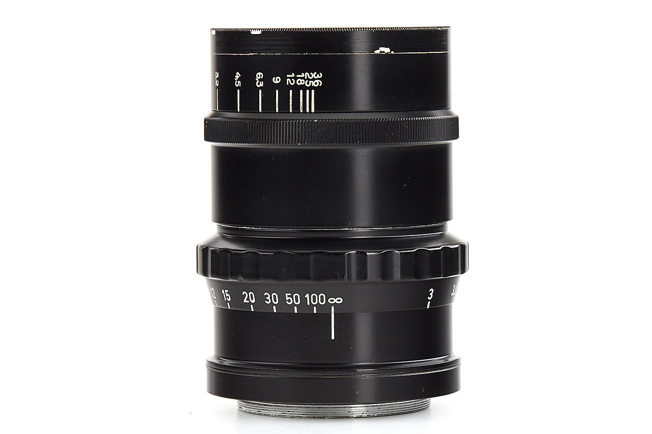 fast medium format lens in very good condition, 62mm screw mount, black paint finish, with a set of three filters, long hood and front cap, very good, clean optics