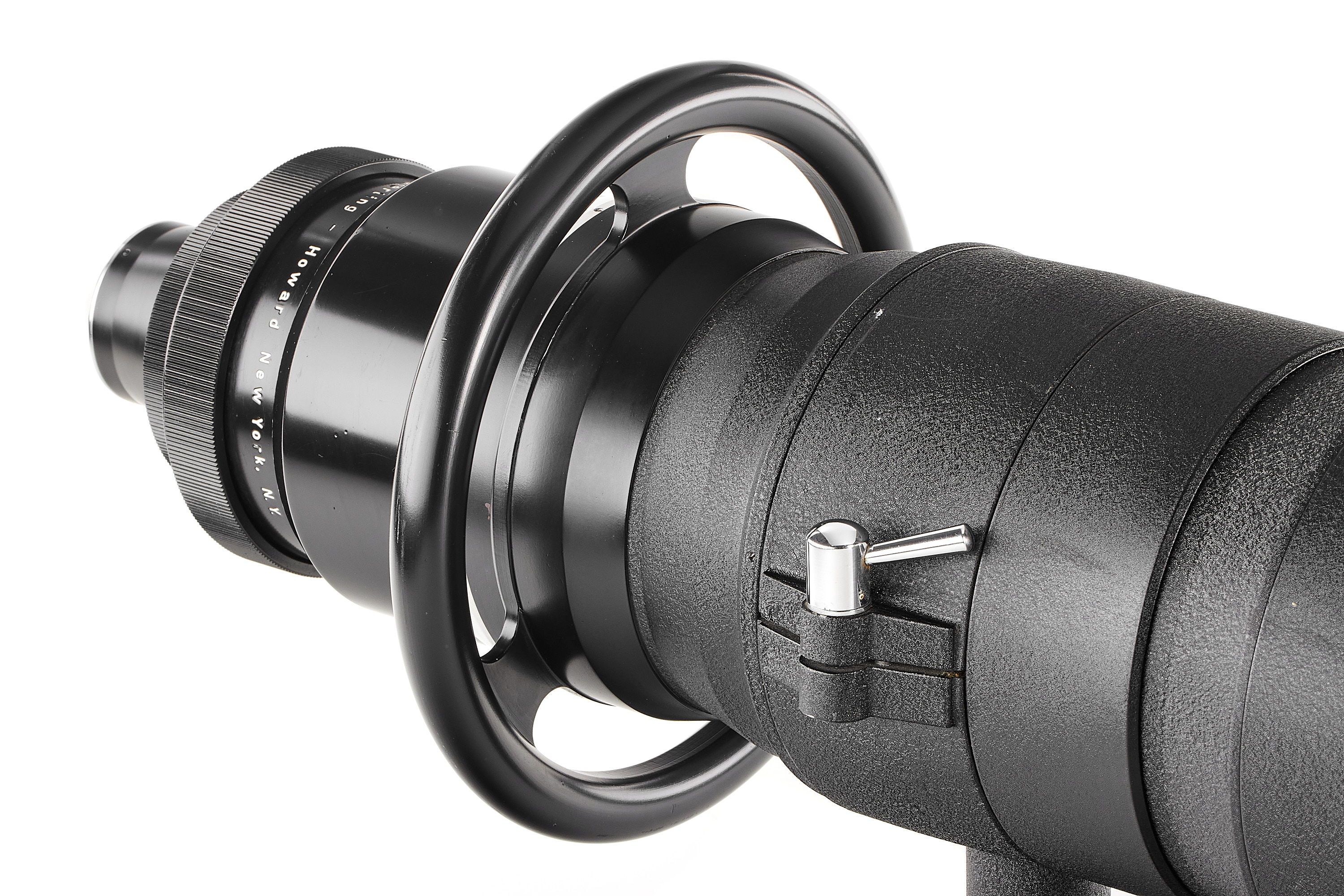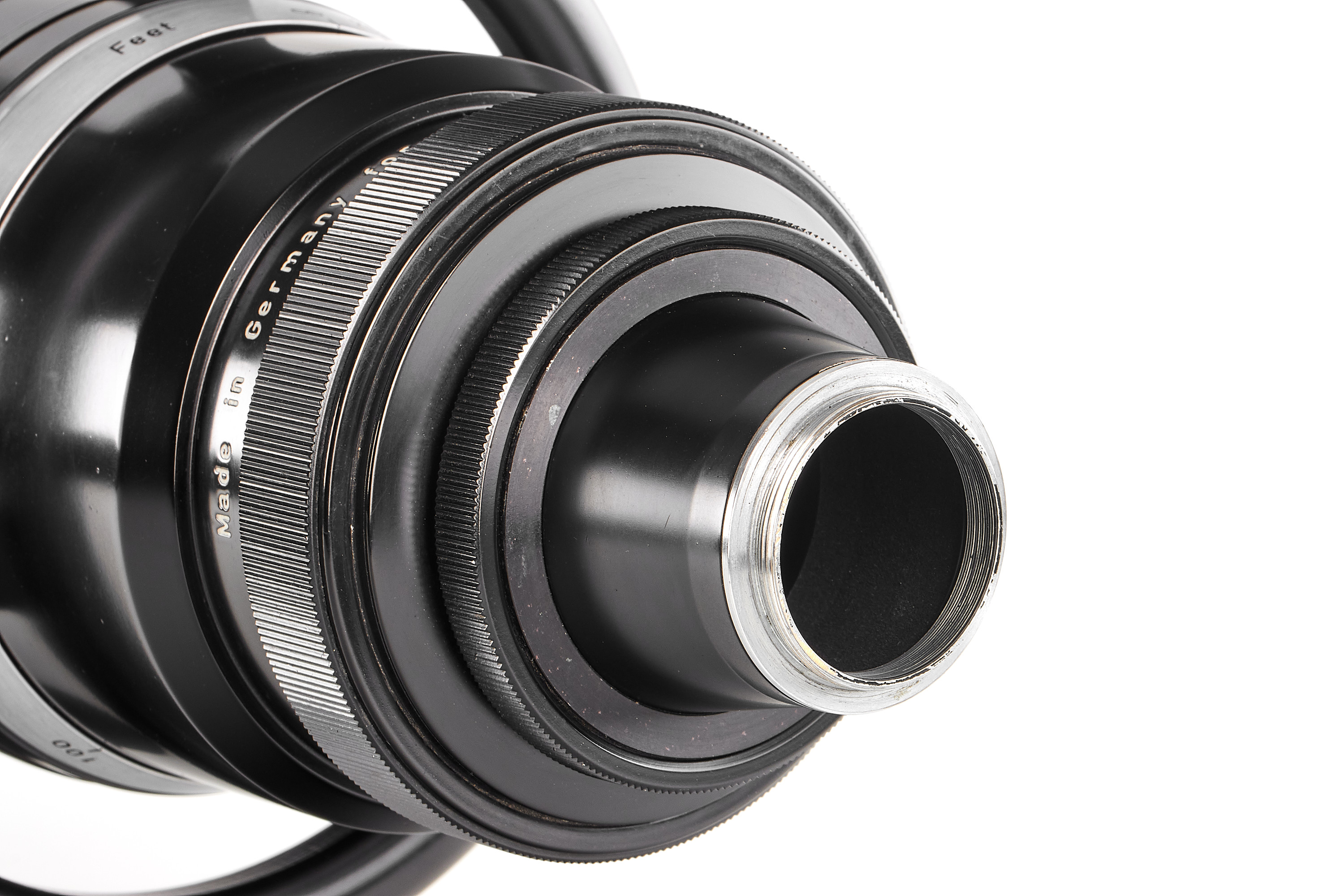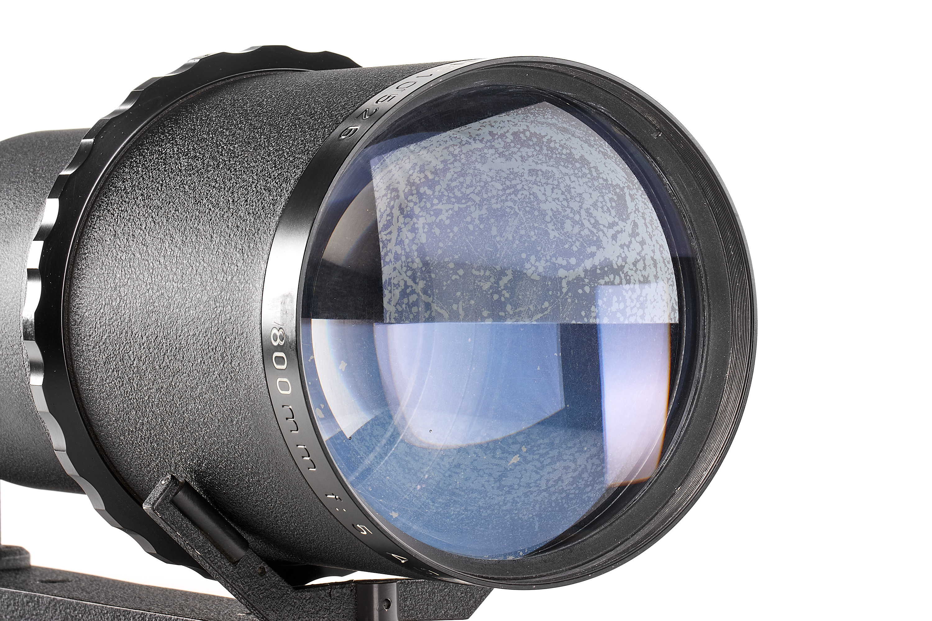 An impressive Astro telephoto lens in good condition (some repaint on the hood), optics showing some haze and focusing a bit hard. Typical for Astro large focusing wheel. Total length 99cm.