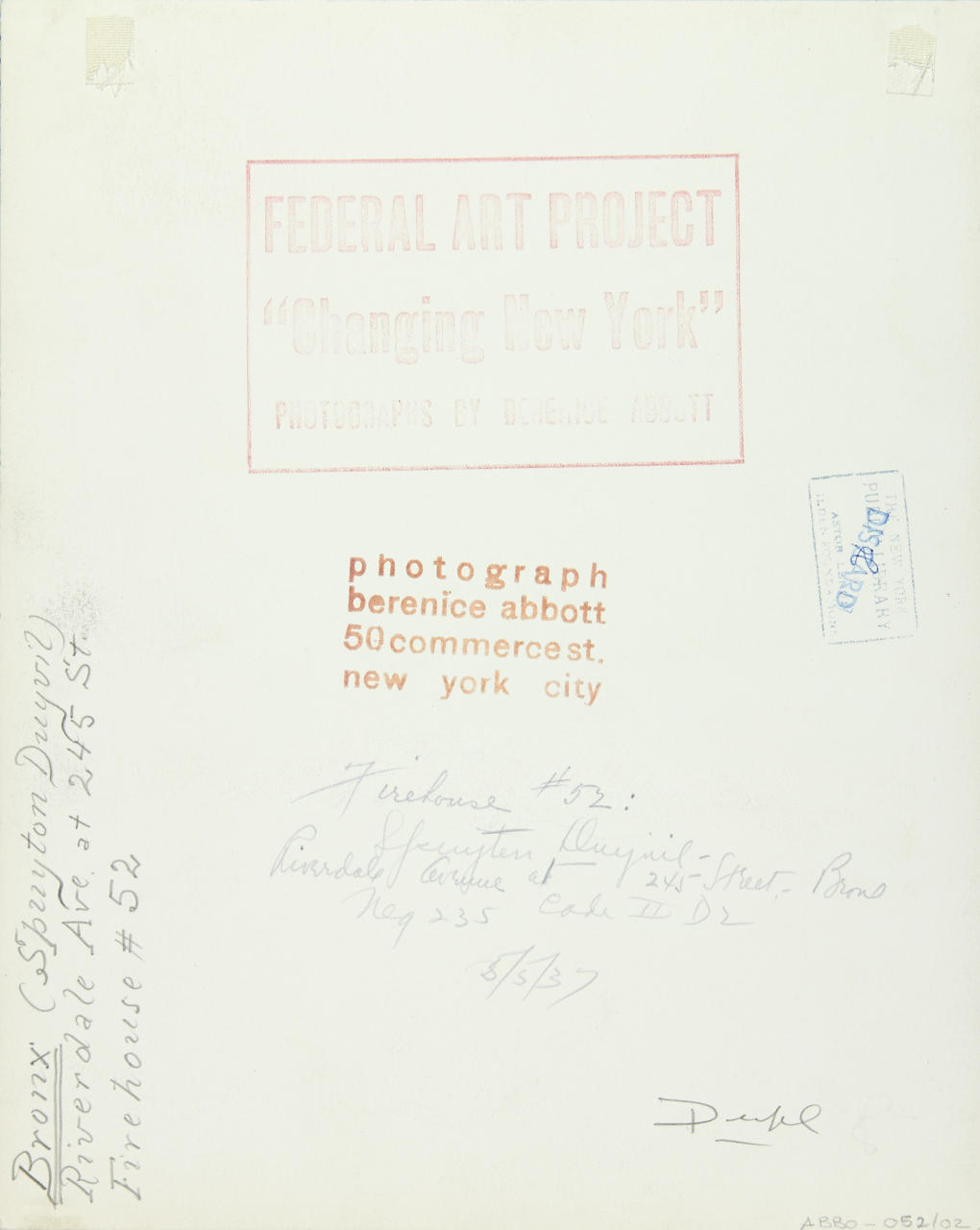 BERENICE ABBOTT (1898–1991) ‘Firehouse Number 52, Riverdale Avenue at 245 Street, Bronx’, 1937