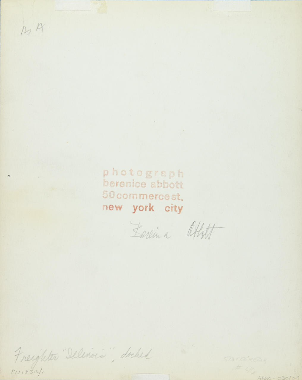 BERENICE ABBOTT (1898–1991) ‘Freighter Illinois, docked, Manhattan’, July 2nd, 1937