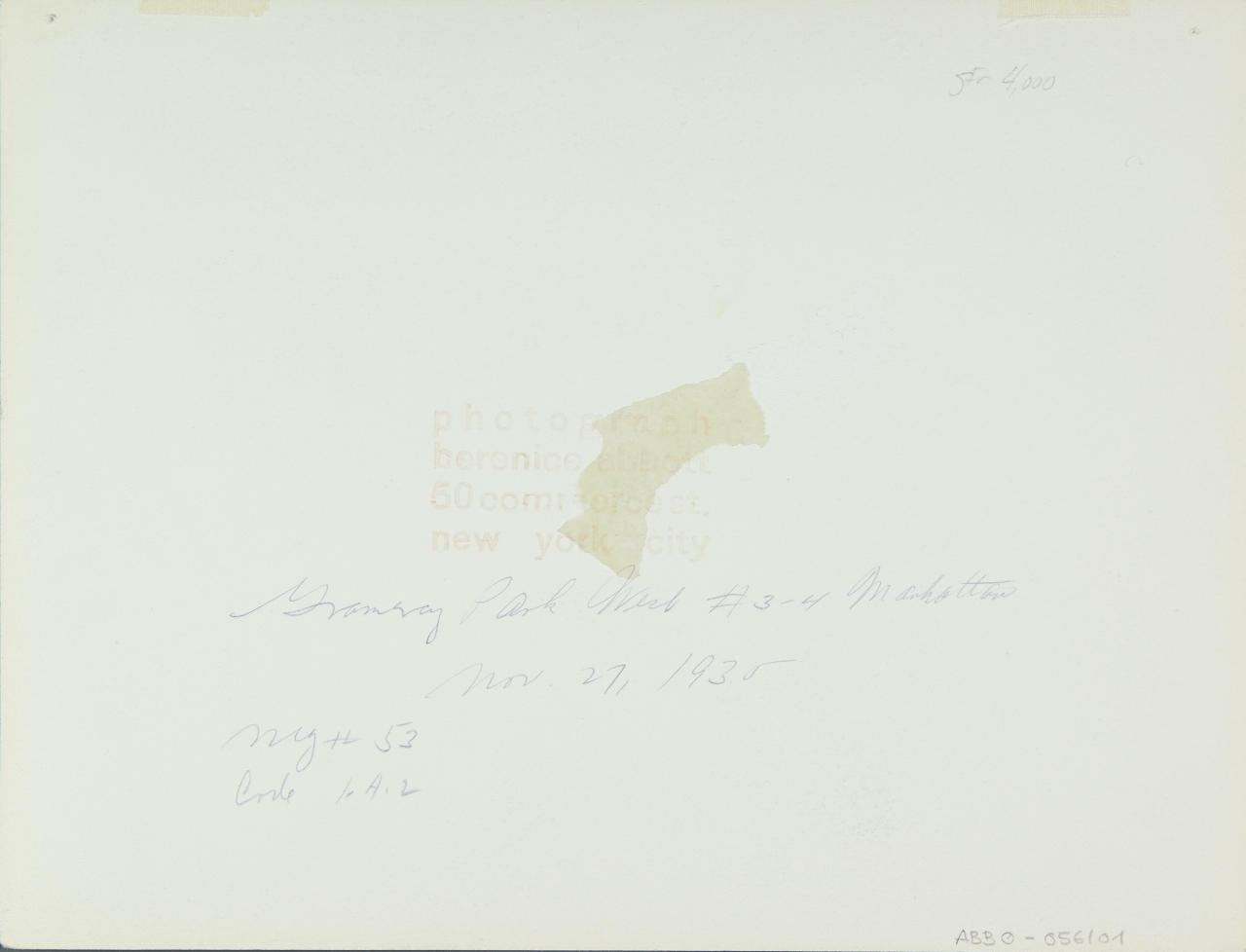BERENICE ABBOTT (1898–1991) ‘Gramercy Park West, No 3-4, Manhattan”, November 27th, 1935