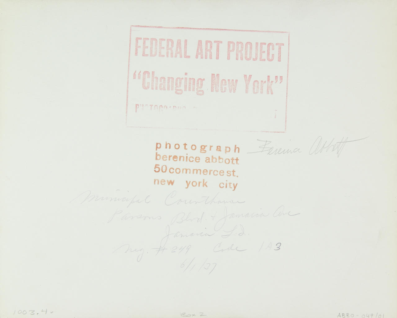 BERENICE ABBOTT (1898–1991) ‘Municipal Courthouse, Parsons Boulevard and Jamaica Avenue’, June 1st, 1937