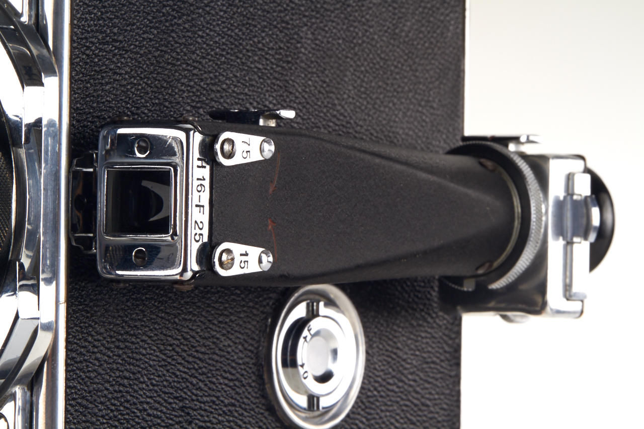 early first version H16 with Tri-focal finder, Som Berthiot Tele-Objectif 2.5/75mm no.356882 (clean lenses), with rare special grip, original instructions book, fitted leather case - in fine, working condition
