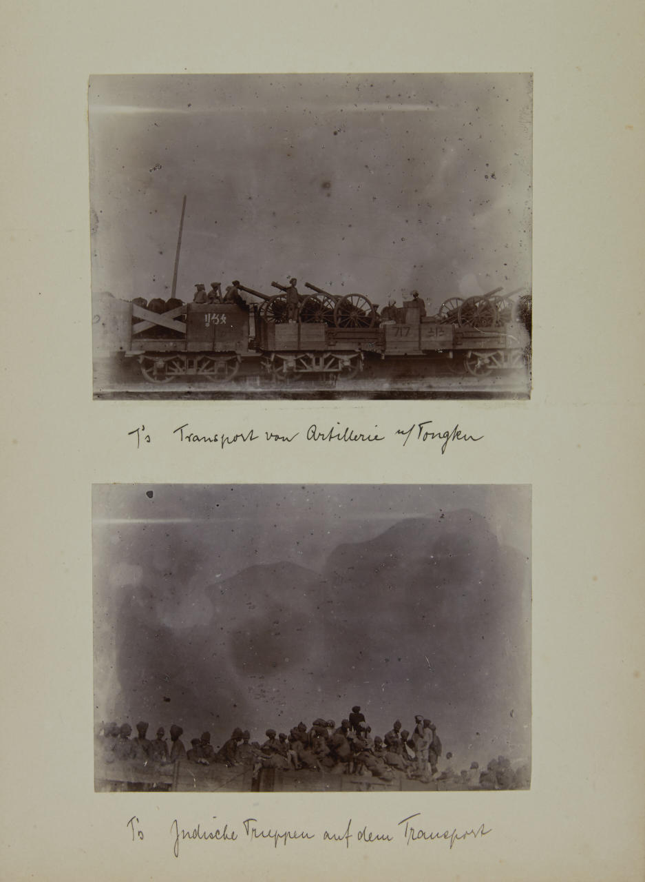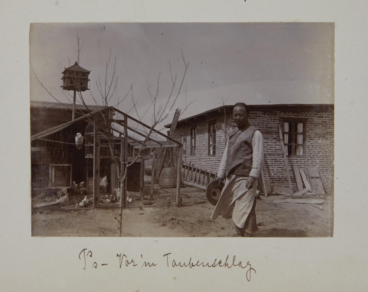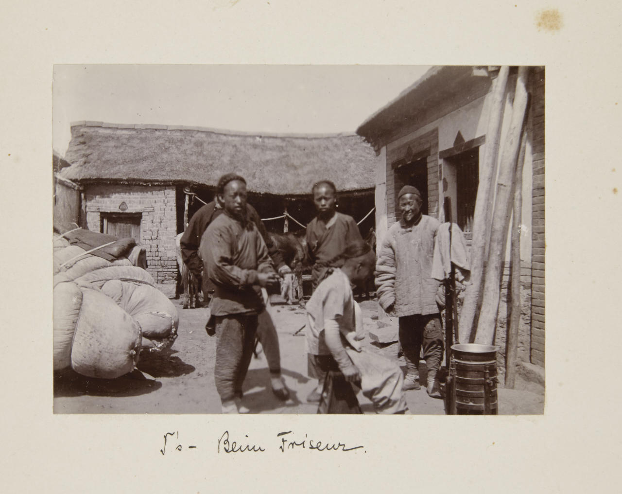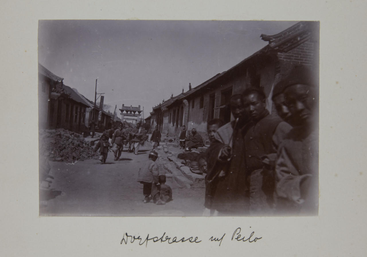 - 1 lacquer album (c. 20 x 28 cm) containing c. 90 collodion prints, the prints are mounted inside on the original cardboard pages sizes vary: majority 12 x 8 cm or 12 x 18 cm most of the images are annotated by the photographer in ink on the mount - 44 loose vintage silver prints, each c. 20 x 25 cm, the majority annotated in pencil and with numeric stamp and Po-Keh-Printing-Peking stamp on the reverse - accompanied by 1 small album with images of Beijings Temple of Heaven (24 gelatin silver prints, each c. 8 x 10 cm) and a couple of post cards