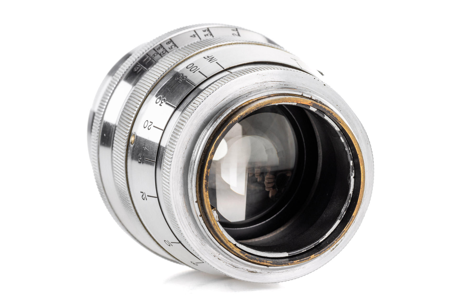 very rare fast portrait lens in original, rangefinder-coupled M39 mount, heavy brass construction with chrome finish, very good optics with only few hairline marks, with rear lens cap